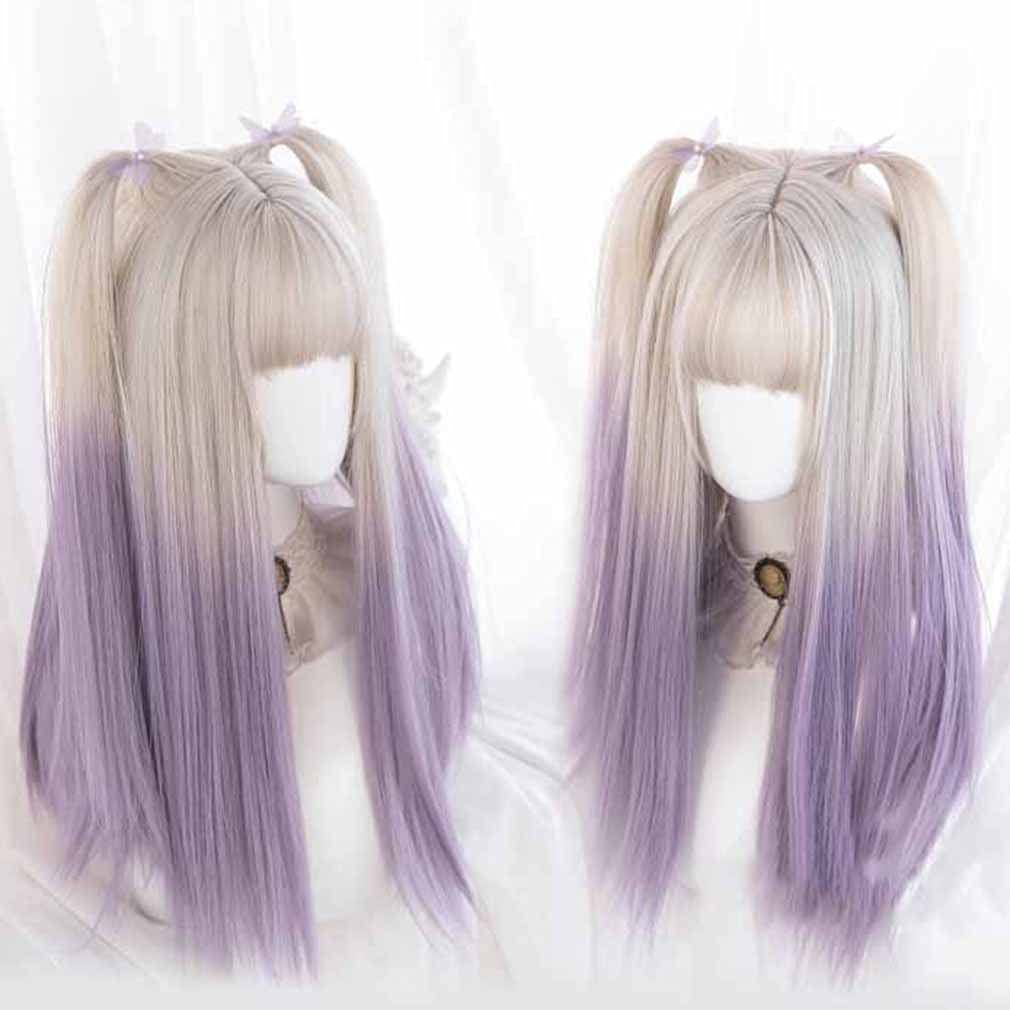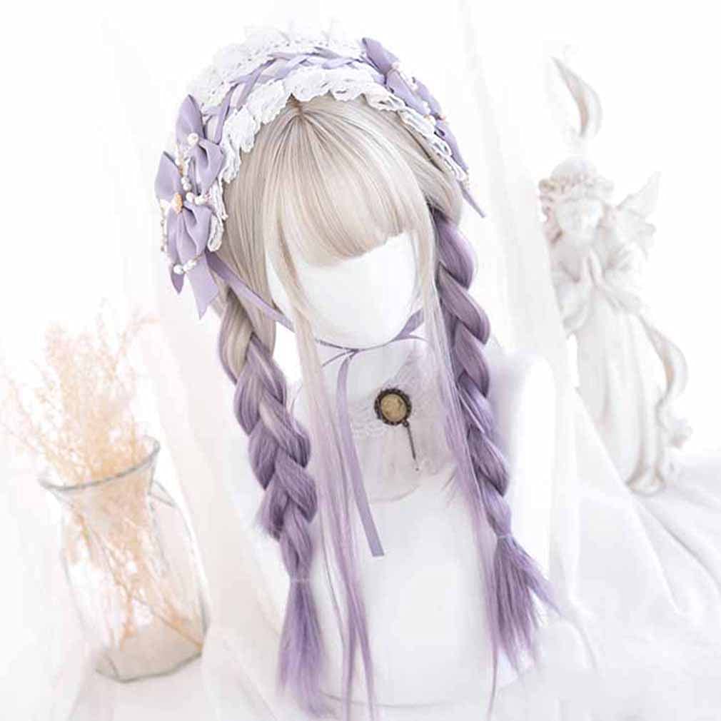 ロリータ ウィッグ 原宿風 GAL系 コスプレ グレー 紫 メッシュ ゴスロリ 耐熱 レディース ロング ストレート 森ガール ゆめかわいい お姫 小顔 パーティー 仮装 日常 かつら wig