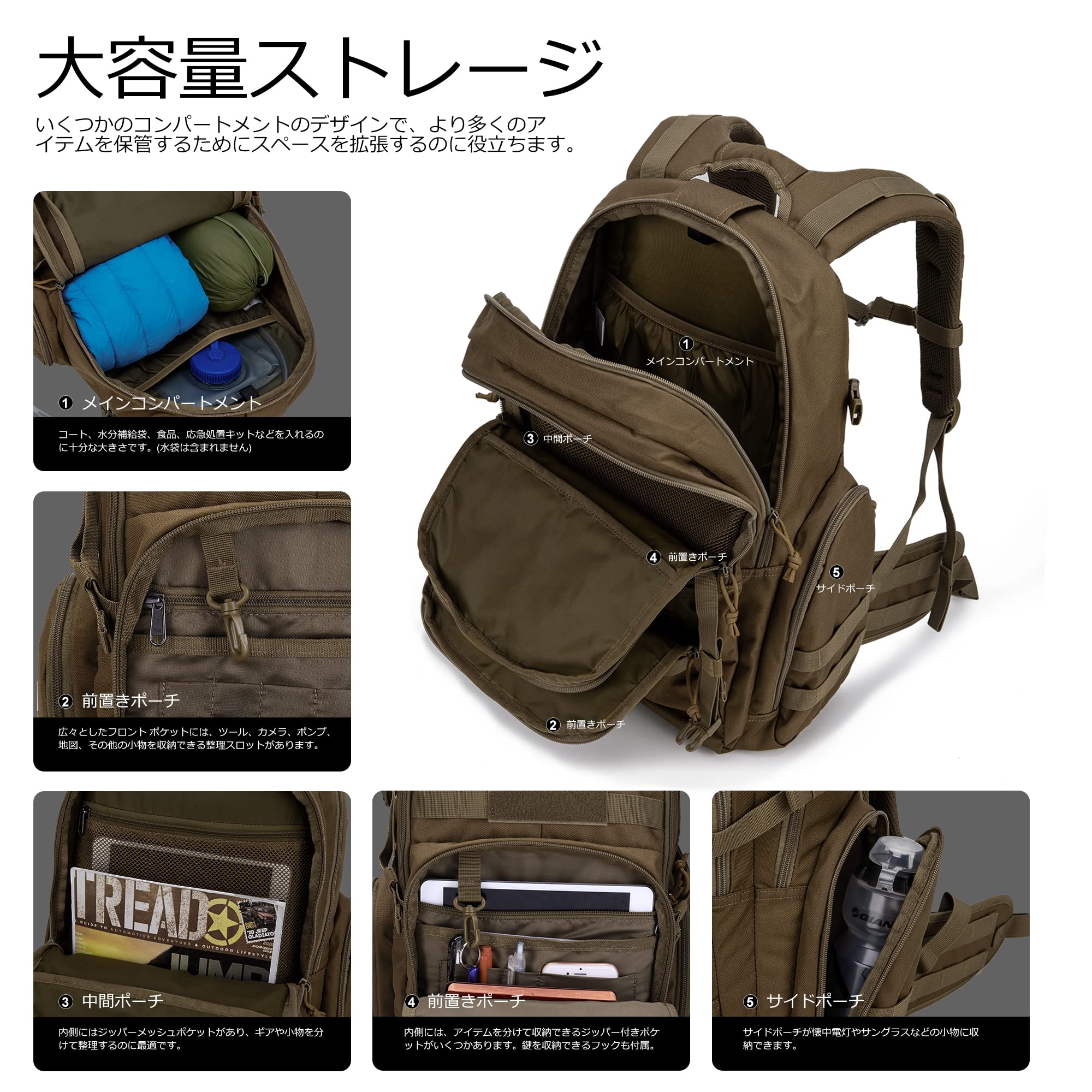 [Mardingtop] 40L ミリタリー バックパック 登山 リュック タクティカル ザック キャンプ ハイキング トラベル アウトドア用 旅行 軍用 Molle対応