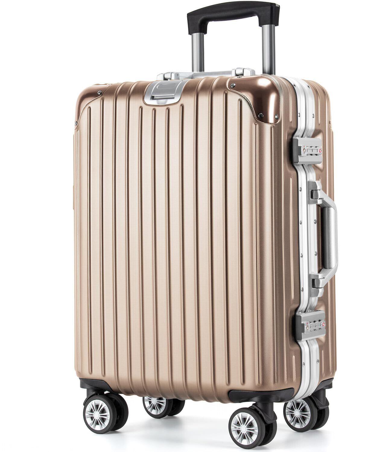 VARNIC スーツケース キャリーケース キャリーバッグ アルミフレーム 大型 静音 ダブルキャスター 耐衝撃 360度回転 TSAダイヤルロック 旅行 出張 (L, ゴールド)