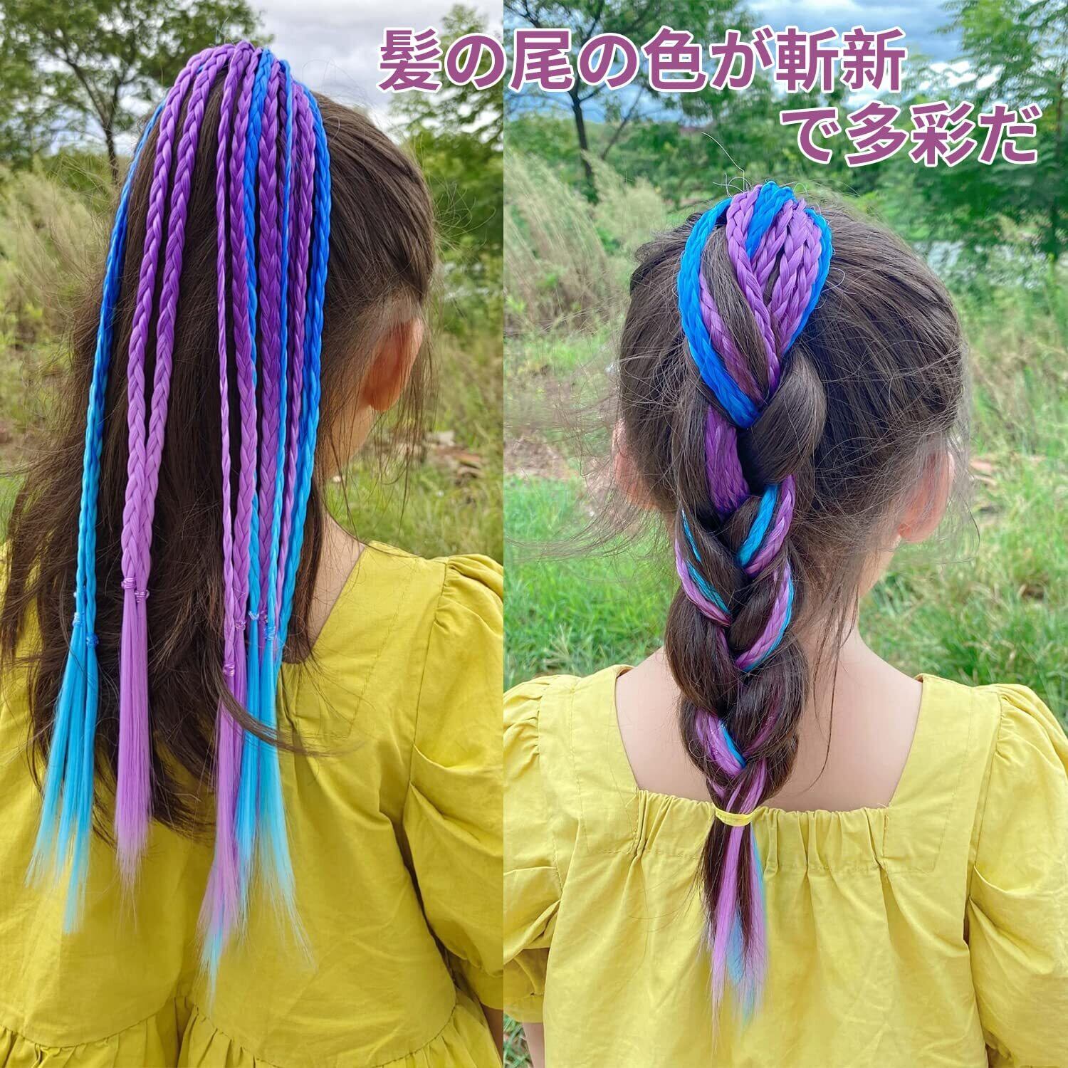 Coollooda ヘアエクステ 三つ編み【3本】 編み込み ハロウィン コスチューム キッズ ダンス イベント グラデーションカラーエクステ キッ エクステンション ヘアエクステ