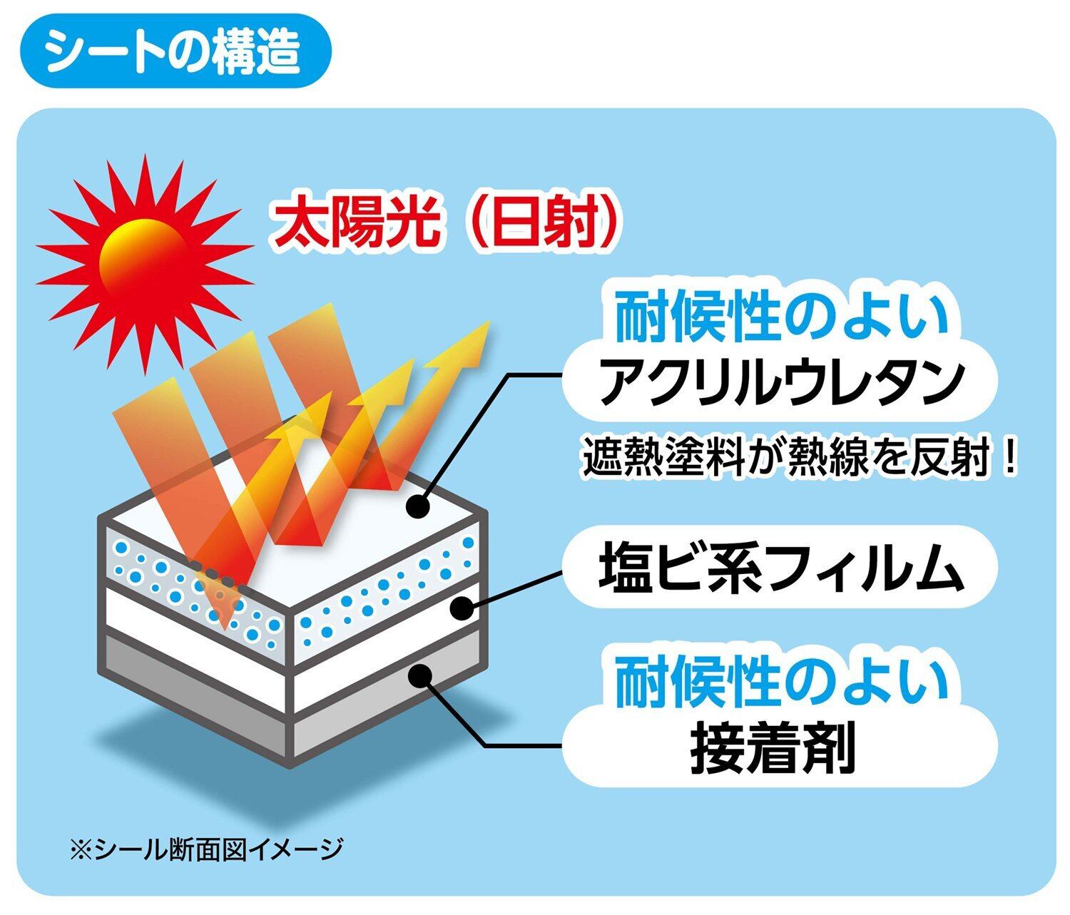上塗り層:アクリルウレタンフィルム:塩化ビニル樹脂接着剤:アクリル耐熱温度:80℃