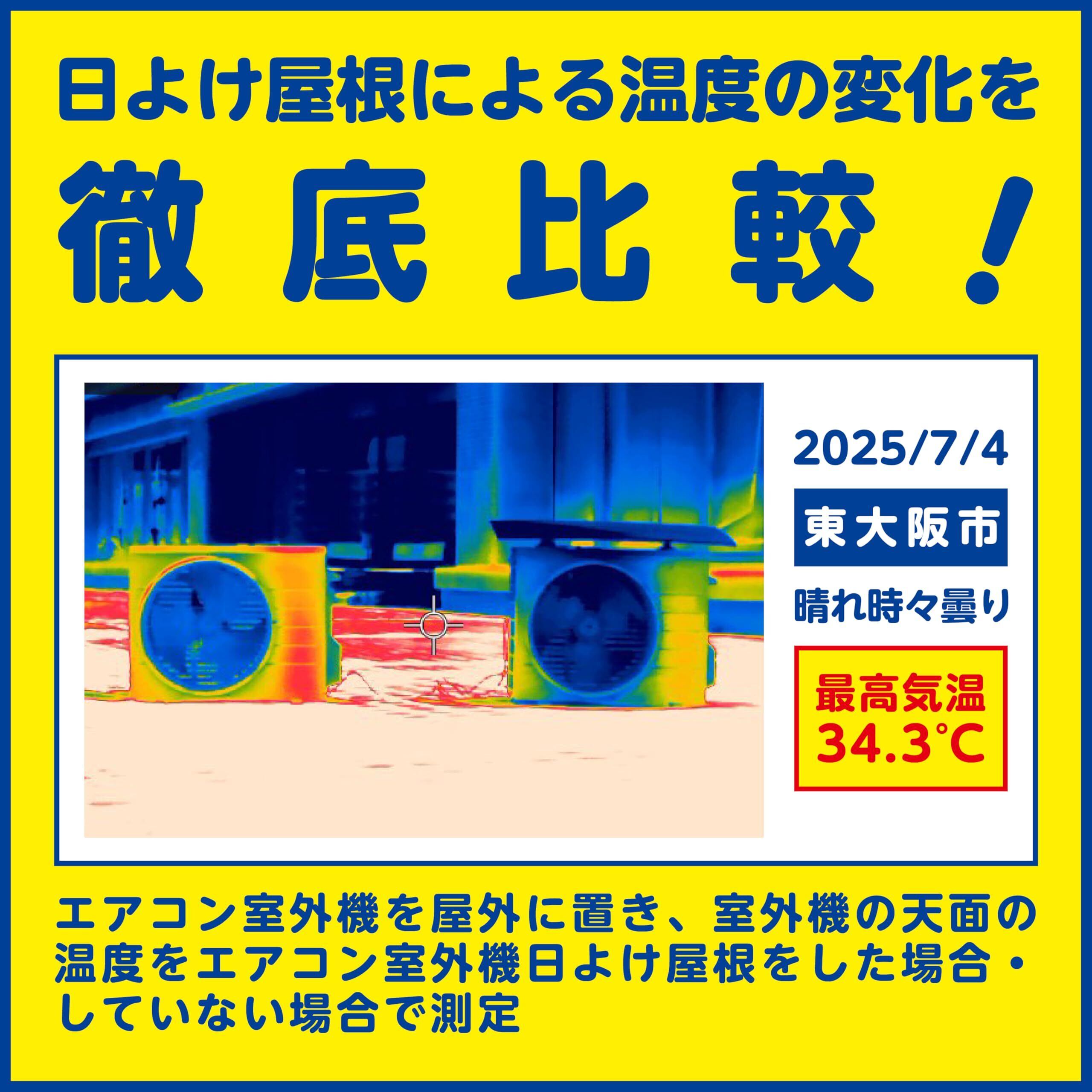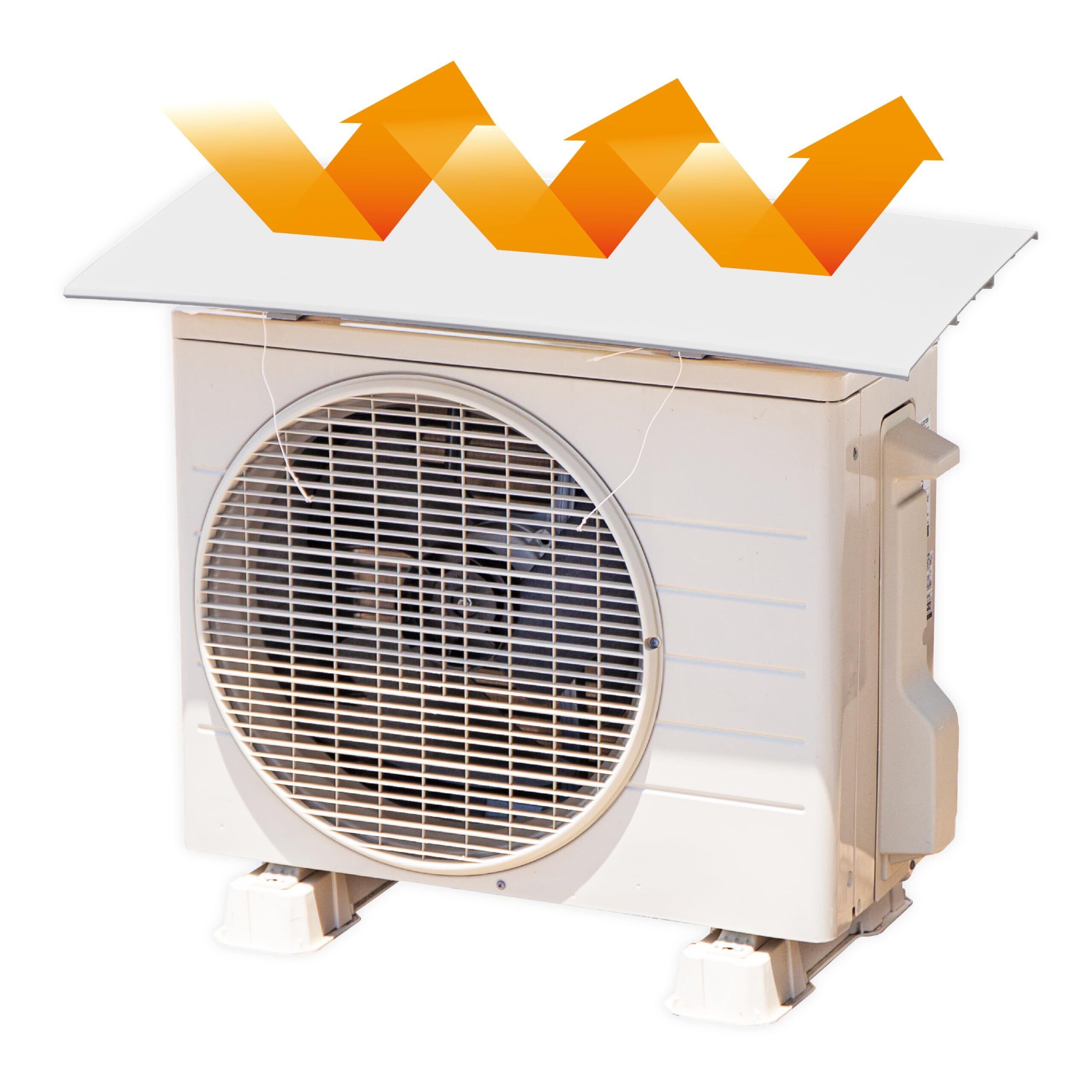 誰でも簡単に設置が出来るエアコン室外機用日よけ屋根。直射日光が当たる場所においてある室外機に商品を設置してエアコンの効率が下がることを防ぎます。