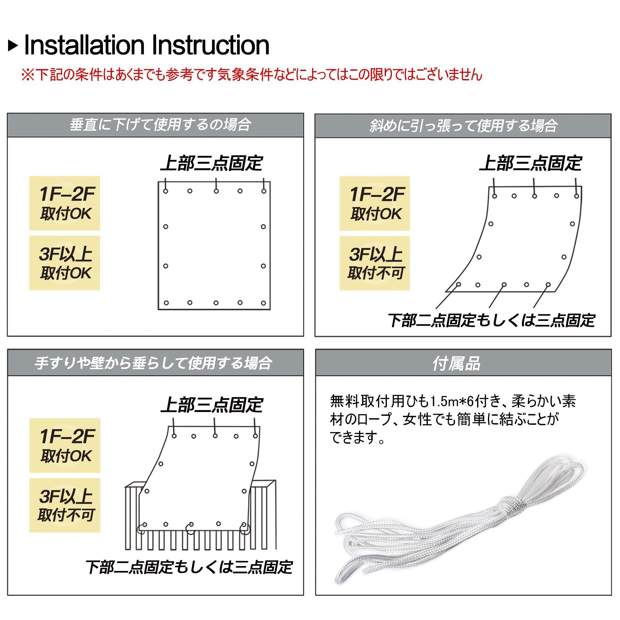 紫外線に強い、蒸し暑さの減少するほか、他人の視線をしっかり目隠し。目かくしや日よけ、物の転落防止など用途は様々です。場所を選ばずお使いいただけます。