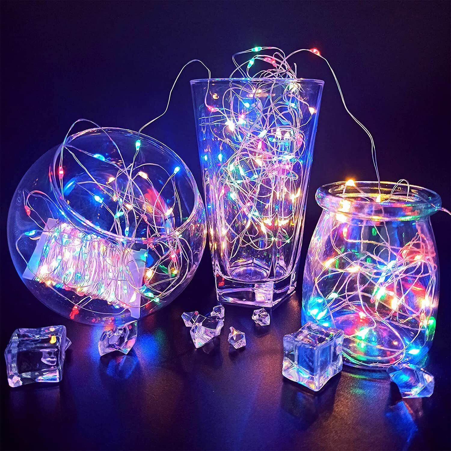 ANJEWLIN LED イルミネーションライトled ストリングスライト 8種光るパターン 電池式 防水 10メートル 電飾 100電球 リモコン付き (レインボー4色(1個))