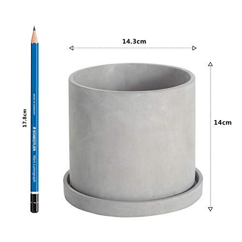 Ekirlin 植木鉢 セメント 鉢 受け皿付き 観葉植物 円筒形鉢 おしゃれ コンクリート 穴付き プランター 5号 シンプル グレー 14cm