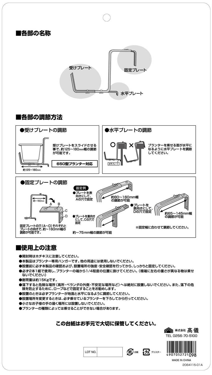 高儀(Takagi) Sun Garden プランターハンガー ステンレス GPH-01【650型のプランター対応で耐荷重15kg】プランタースタンド プランターハンガー プランター フック ハンギングプランター ガーデニング用品 ベランダ プランター引っ掛け フラワースタンド