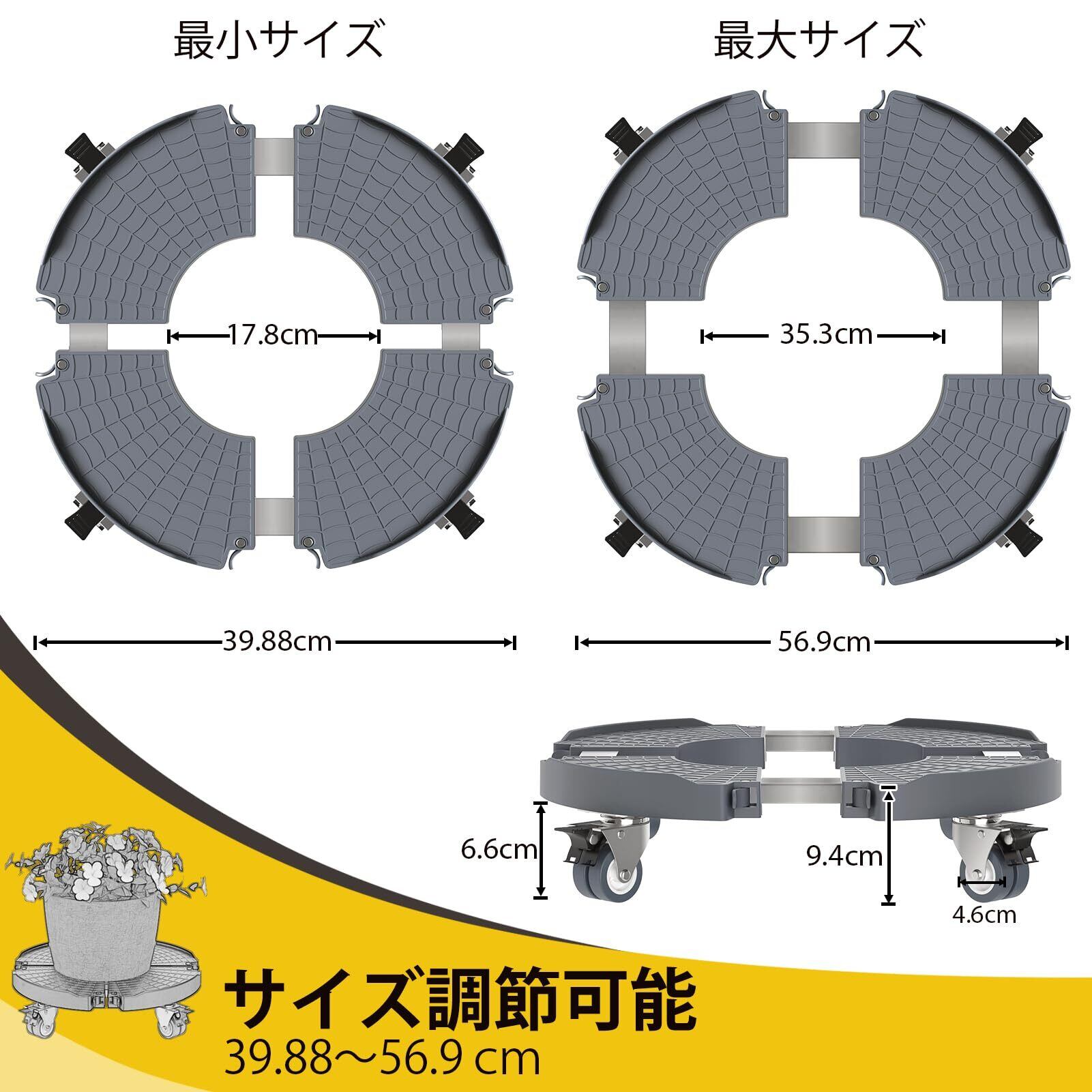 Goovilla 花台 鉢受プレート 移動できる 植木鉢台 キャスター付き 伸縮タイプ サイズ調節可 360°移動便利 滑り止め 38.1-55.8cm 伸縮可能 円形と矩形対応 高さ9.4㎝ 耐荷重200kg (グレー)