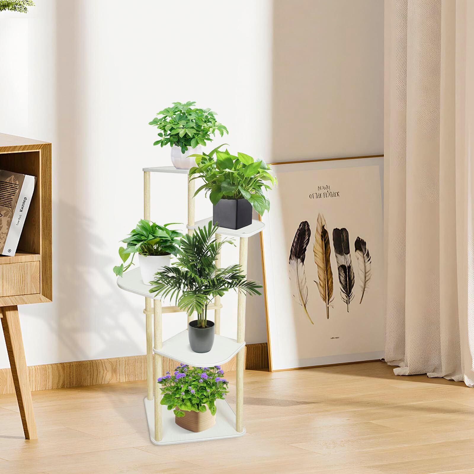 GIBLEA フラワースタンド 室内 5段 プランタースタンド 花台 観葉植物 台 木製 盆栽棚 おしゃれ 階段状 簡単な組み立て