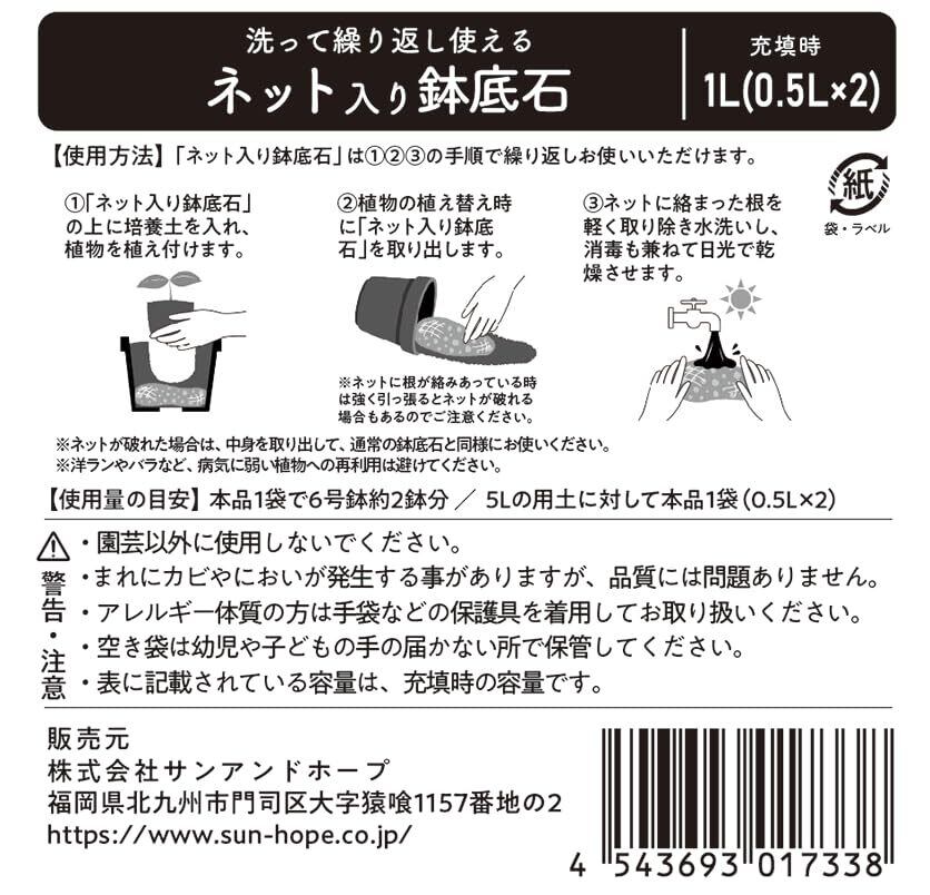 サンアンドホープ クラフト ネット入り鉢底石 1L 環境にやさしいクラフト紙 洗って繰り返し使える 軽石