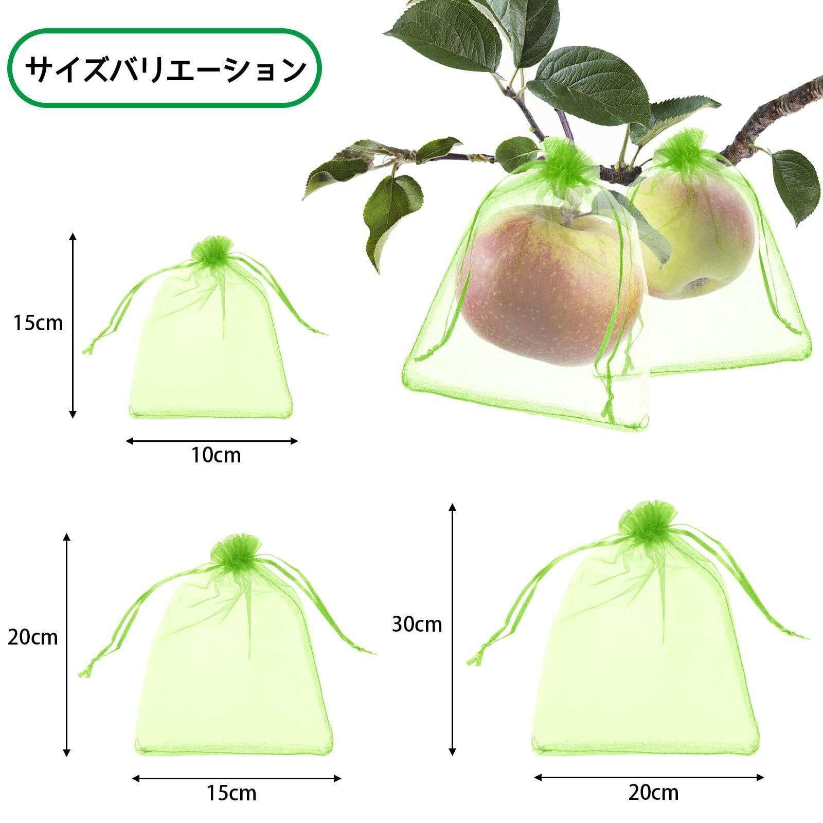【耐久性】果樹袋はオーガンジー素材を採用し、耐腐食性に優れ、破れにくいです。メッシュ袋のため、光透過性も通気性も良く、果物の発育と成長にあまり影響を与えません。