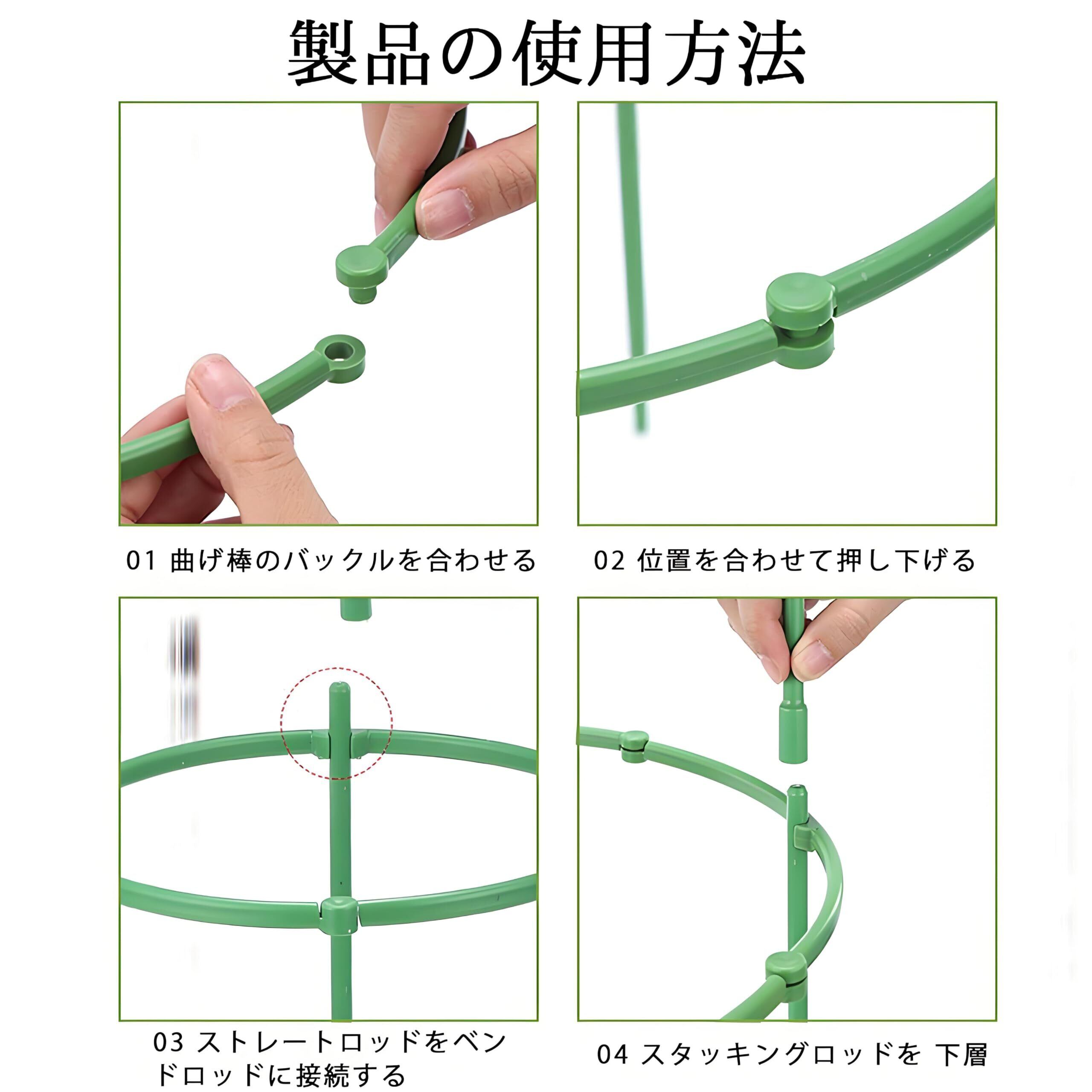 1.【独特なデザイン】土に刺しやすいように底が尖いと設計され、植物の高さに合わせて、支柱は土に差し込む長さを調節できます。業界での全新デザインで出発!T型の支柱形態は、植物を幼い時期から成熟する時期まで介護して、在来製品より植物の発育調子をもっとうまく把握することができる。それに独特な誘引装置のご使用に伴って、たとえ素人の君であっても、栽培達人の道に向かうことになるでしょう! 2.【シンプルな和風デザイン、自然の美しさとの融合】このフラワーケアスタンドは、シンプルな和風デザインと滑らかなラインが特徴で、お庭やバルコニーに溶け込み、自然の美しさを引き立てます。 シンプルで飽きのこないデザインで、植木鉢を安定的に支え、観賞価値を高める装飾品としてもお使いいただけます。 3.【スナップスプライシング、柔軟で多用途】スナップスプライシングデザインを採用し、組み立てと分解が簡単で、複雑なツールは必要なく、便利で迅速です。 支柱の高さと角度は植物のサイズと形状に応じて自由に調整でき、植物を最適にサポートします。組み合わせて使用でき、農作物の面積に合わせて自由に選びます。分解して組み立てる必要はありません。ほとんどの茎が入るのに適しており、シングルステークのリングは植物を十分に支えることができますが、その成長を妨げることなくそれに十分なスペースを与えます。 4.【多用途】フルーツ・フラワーズ・ベジタブルのさまざまな種類の植物に対応できます。バラ、トマト、ユリ、牡丹および細い茎を持つ他の多くの植物に適しています。トマト、アジサイ、蘭、バラなどの屋内の鉢植えの植物。葉物植物の形をより魅力的にすることもできます。 5.【自然な観葉支柱】緑の滑らかな表面により、自然に植物に溶け込むことができます。植物の造形に適用します、植物をまっすぐ健康に成長させるために支え、枝やつるが広がったり落ちたりするのを防ぐことができる植物支柱です、植物の枝が横に伸びて、見栄えが悪くなったり、多くの場所をとったりするのを防ぎます。