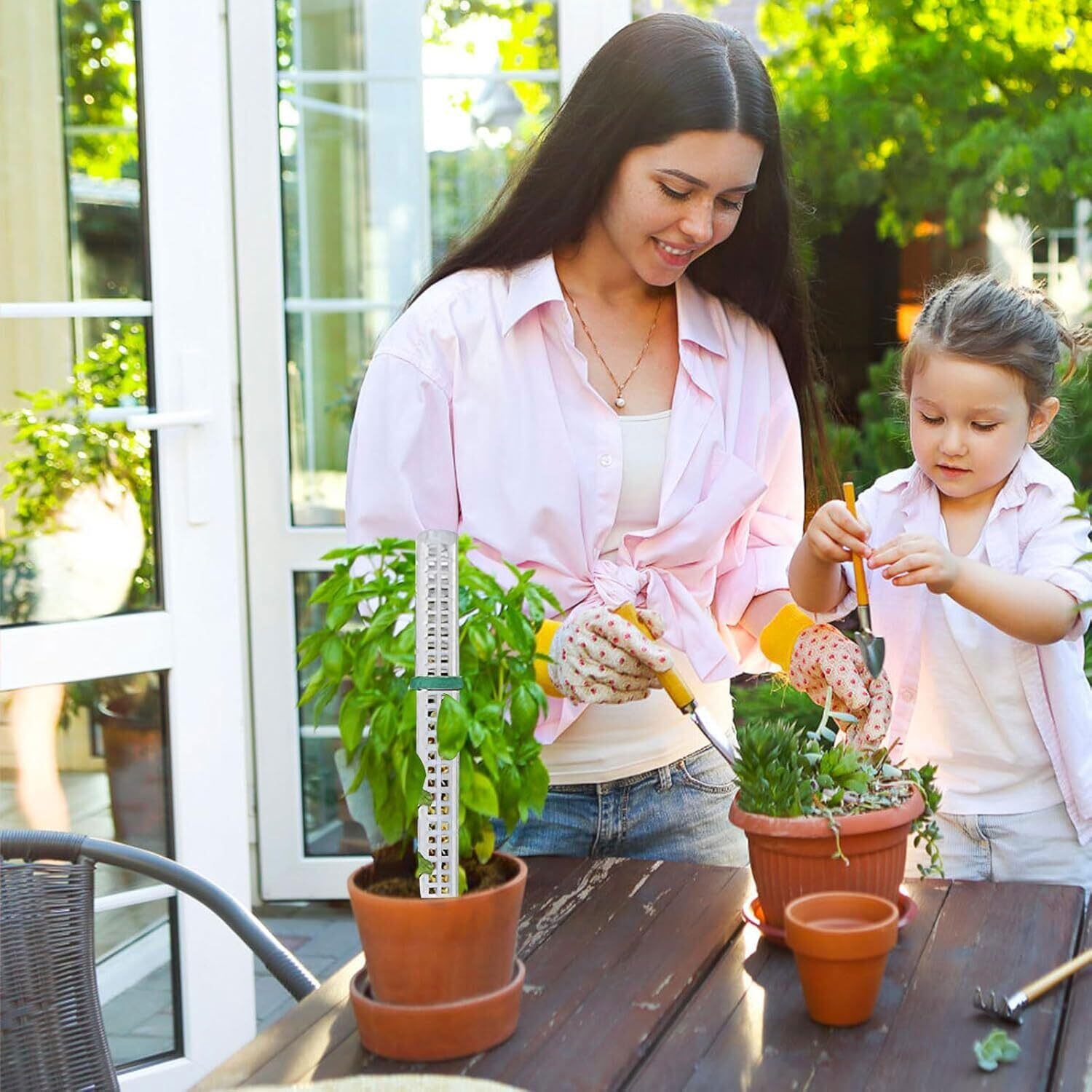 軽量かつ耐久性のあるプラスチック素材を使用し、観葉植物の成長に合わせて支柱を連結することができ、高さを調整できます。2本セットのため、複数の植物を同時にサポートすることも可能です。