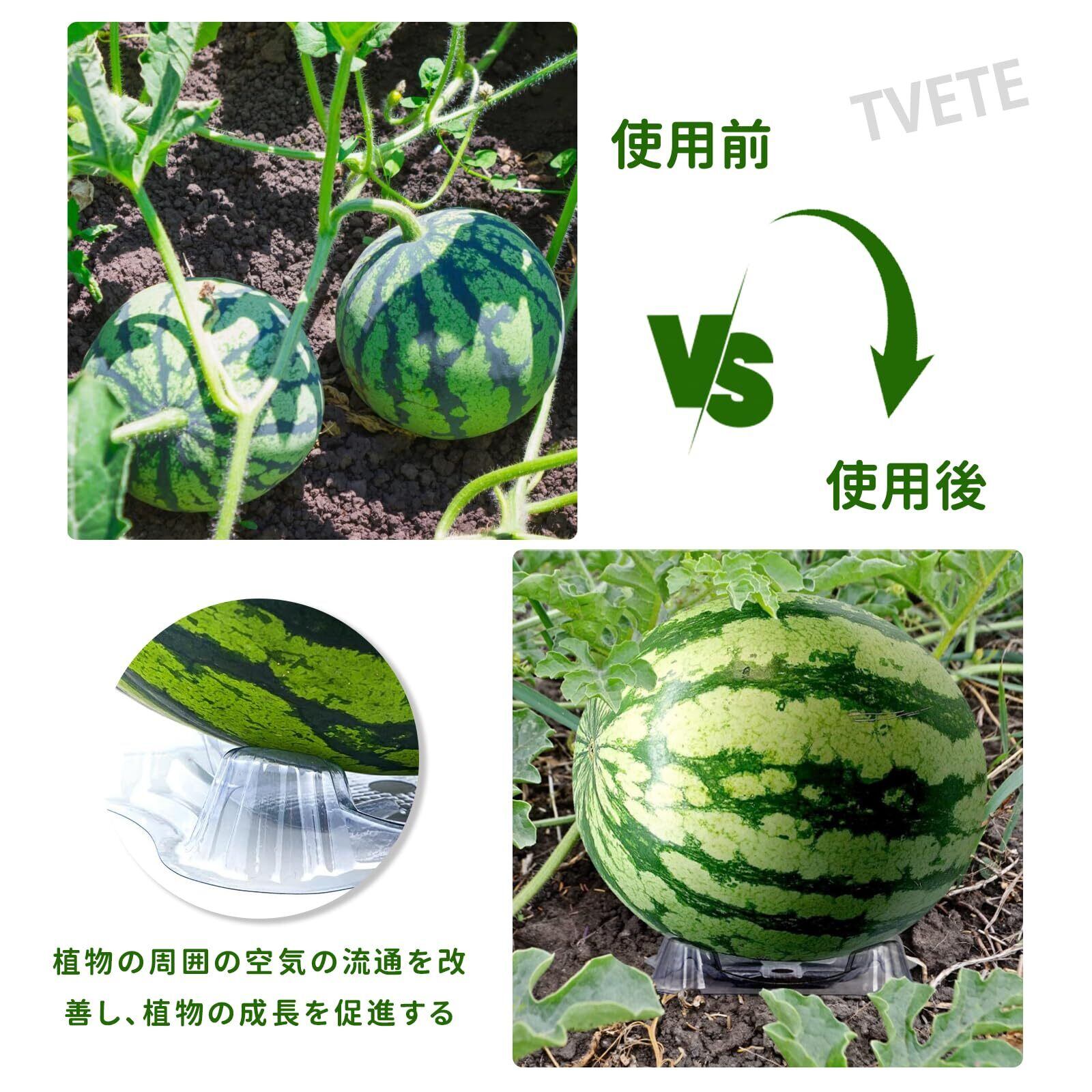 【果実を地面から守る!腐敗・虫害防止】プラスチック製のスイカトレイは、果実と地面が直接触れることを効果的に防ぎ、大切なスイカを清潔に保ちます。これにより、雨水や土壌からの湿気がこもりにくくなり、特に湿気の多い梅雨時期や長雨の季節でも、果実の腐敗やカビ、さらには虫害のリスクを大幅に軽減します。健康な果実育成をサポートします。