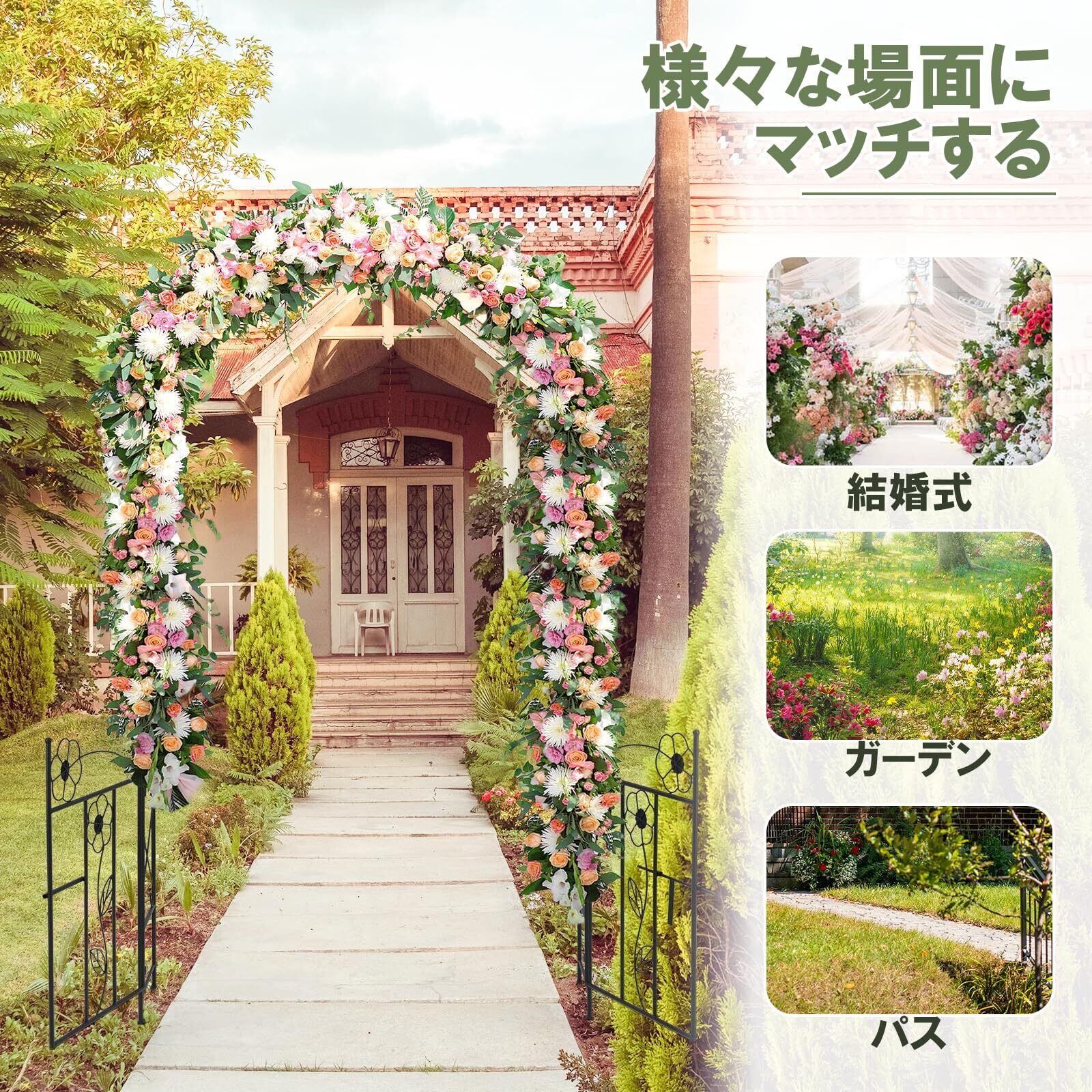 TANGKULA 鉄製アーチ 扉付き ガーデンアーチゲート 立体構造 バラアーチ アイアンアーチ ガーデニング用品 幅116cm 奥行37cm 高さ228cm パーゴラ 結婚式 園芸 菜園 玄関 バラ つる 花立て 耐候性 組み立てやすい 花模様の装飾
