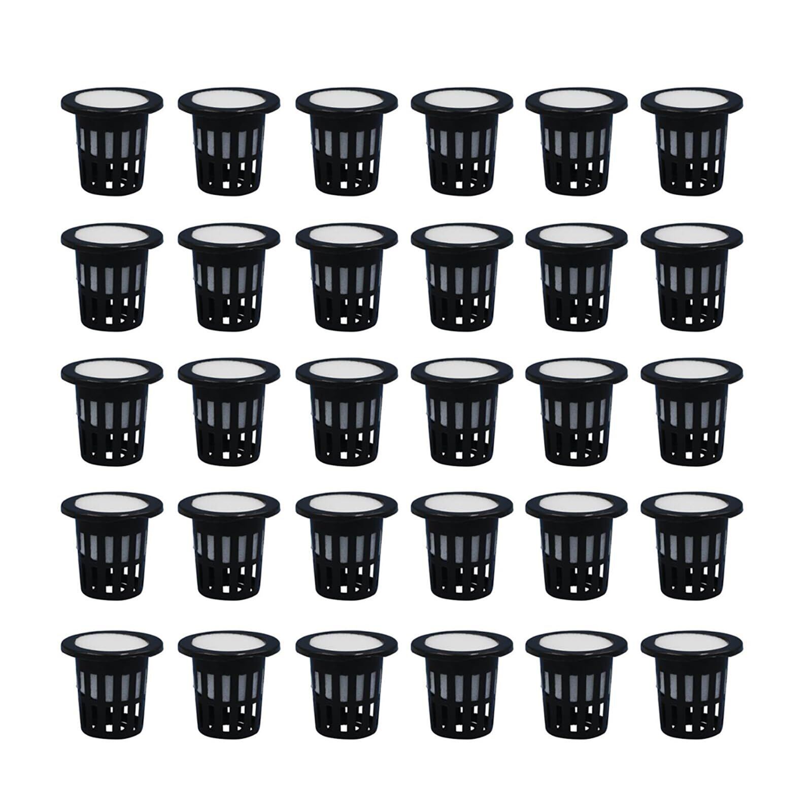GOODCHI 水耕栽培鉢 定植かご プラスチックメッシュポット 水耕栽培ポット 園芸 庭園 ガーデンニング 植物栽培 有機栽培 水培養 スポンジ付き 水培養 花盆 定植育苗かご 30個セット (ブラック)