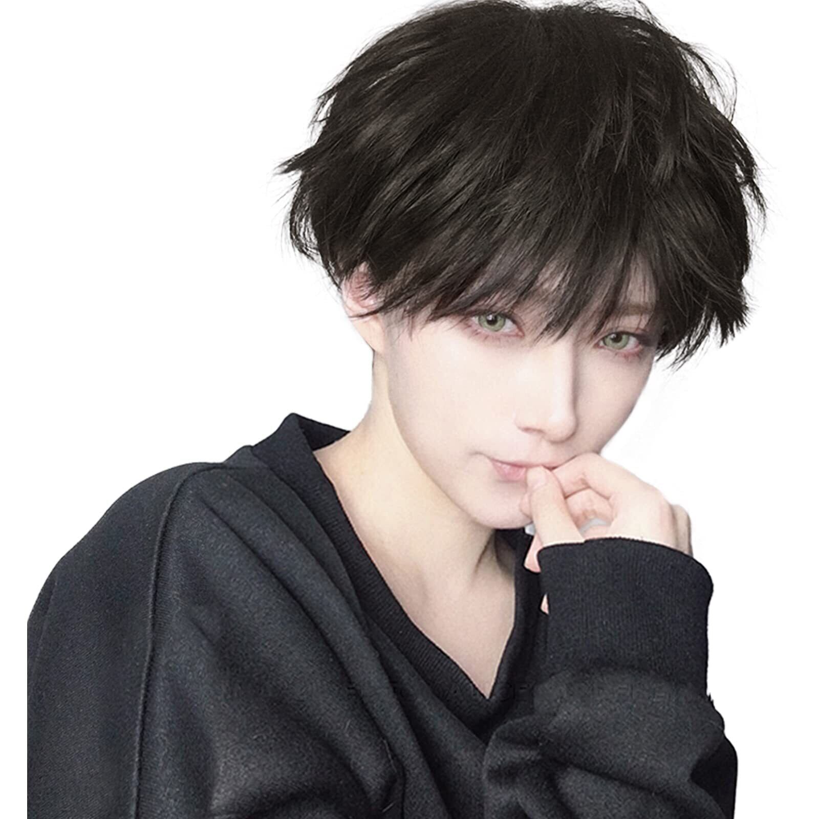 Hawkko ウィッグ メンズ かつら ショート フルウィッグ 男装 黒 男性 原宿 イケメン ハンサム 男性用 自然 小顔 耐熱 人気 ウィッグ ファッション イメチェン 男女兼用 短髪 ネット/櫛付き(黒茶色)