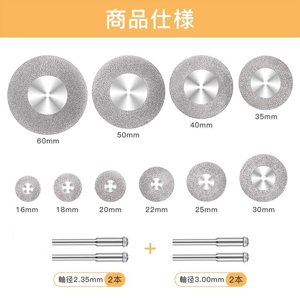 【パッケージ内容】ダイヤモンドカッター10枚、軸4本(軸径2.35mm*2、軸径3.00mm*2)