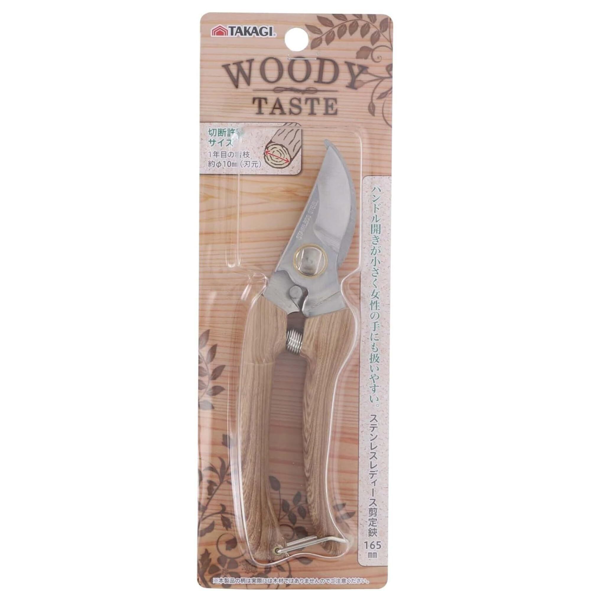 高儀(Takagi) ステンレスレディース剪定鋏 WOODY TASTE 165mm【開きが小さく女性の手にも扱いやすい 】【切断許容:一年目の若枝約φ10mm】
