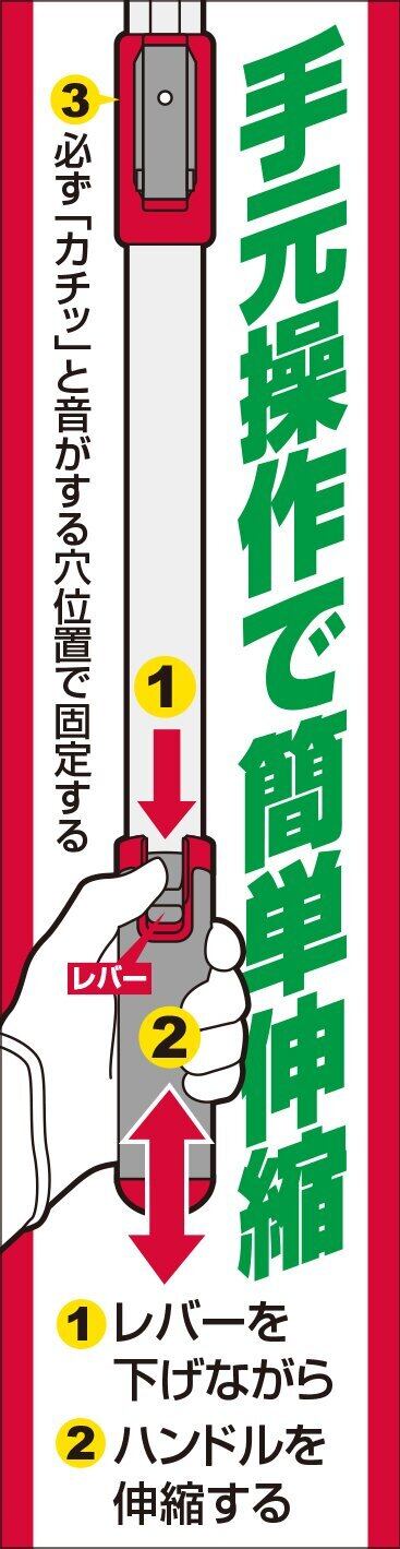 ・手元操作で6段階の伸縮が簡単に行なえる