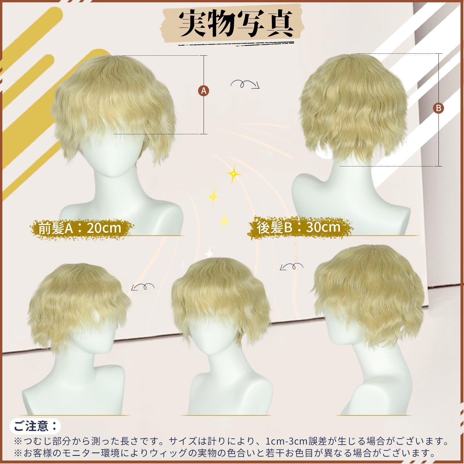 FORCUTEUウィッグ メンズ 金髪 ショート フルウィッグ パーマ コスプレ 人気 ファッション 小顔 耐熱 ネット/櫛付き