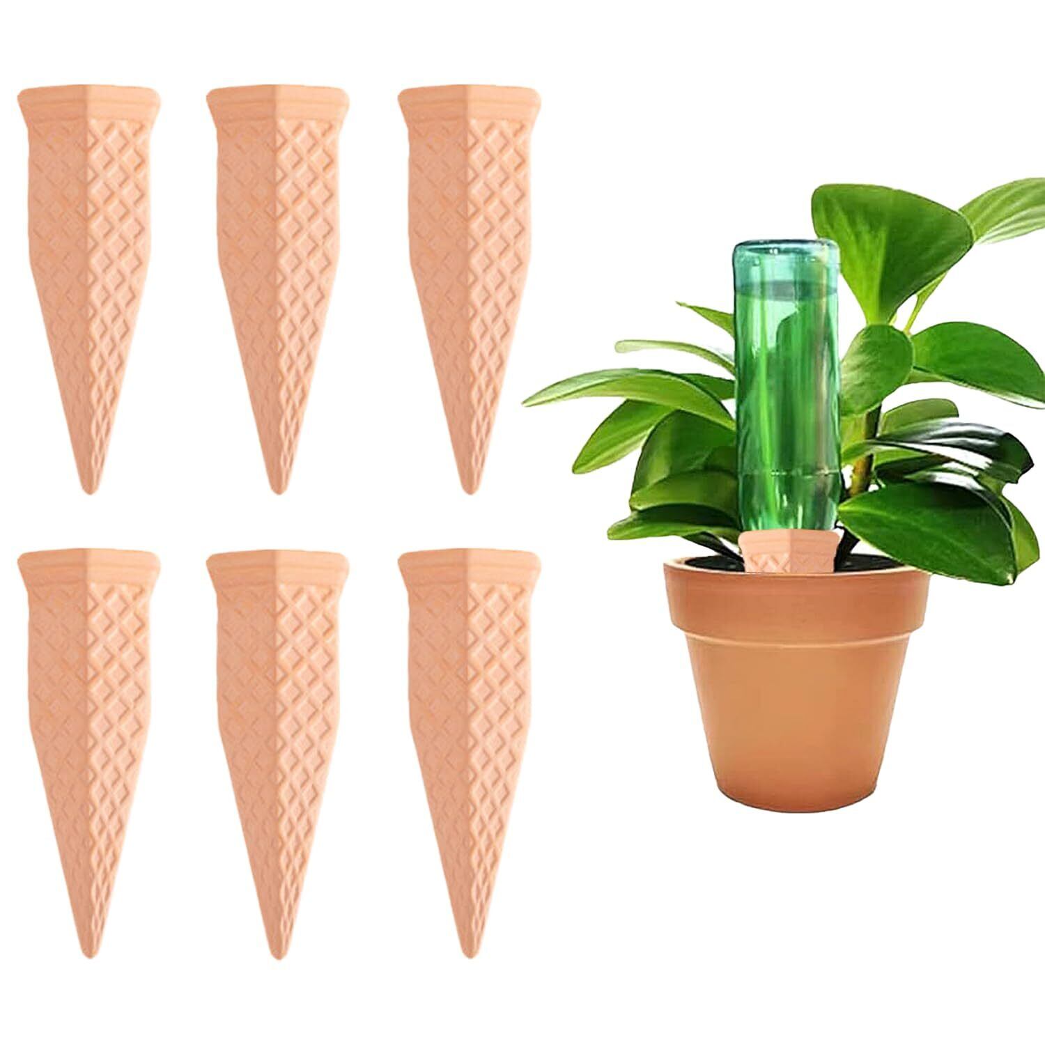 YBHWOGI 自動水やり器 植物 水やり 自動給水器 6本 自然素材陶土製 鉢植え用 持続保湿式 留守中も安心 ペットボトルに対応 室内 ベランダ対応