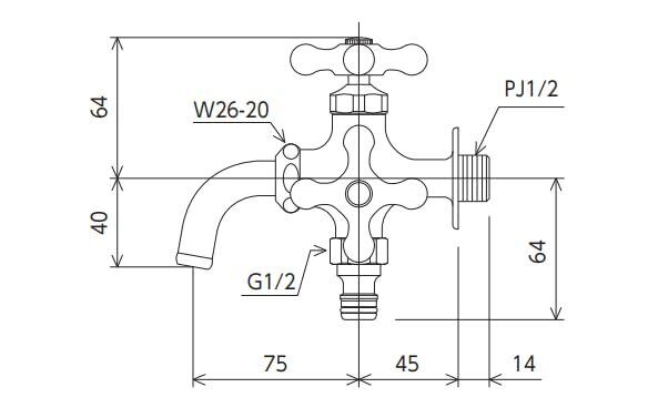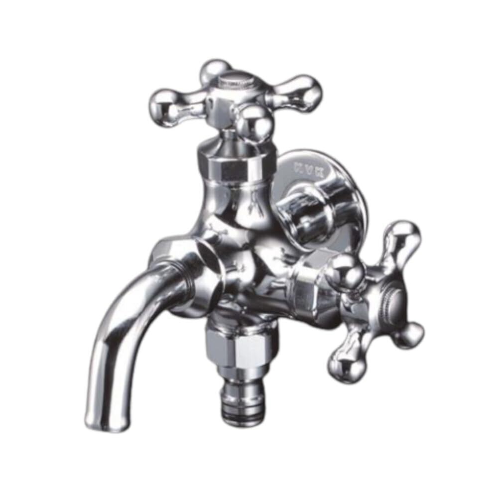 ●屋外ホース接続ニップル付二口横水栓。