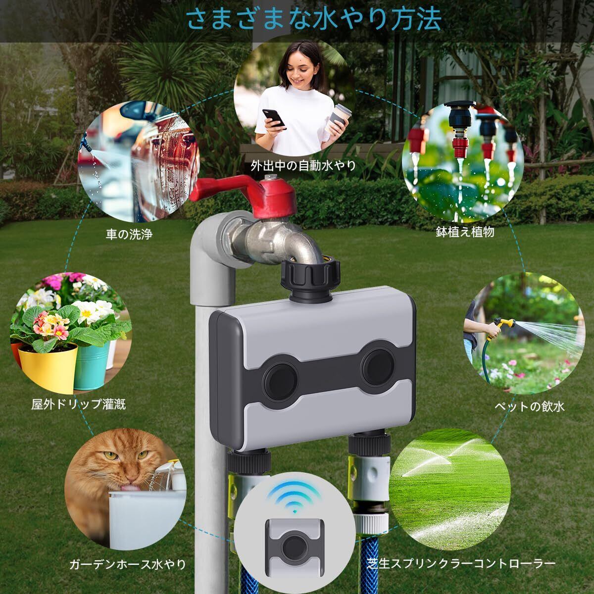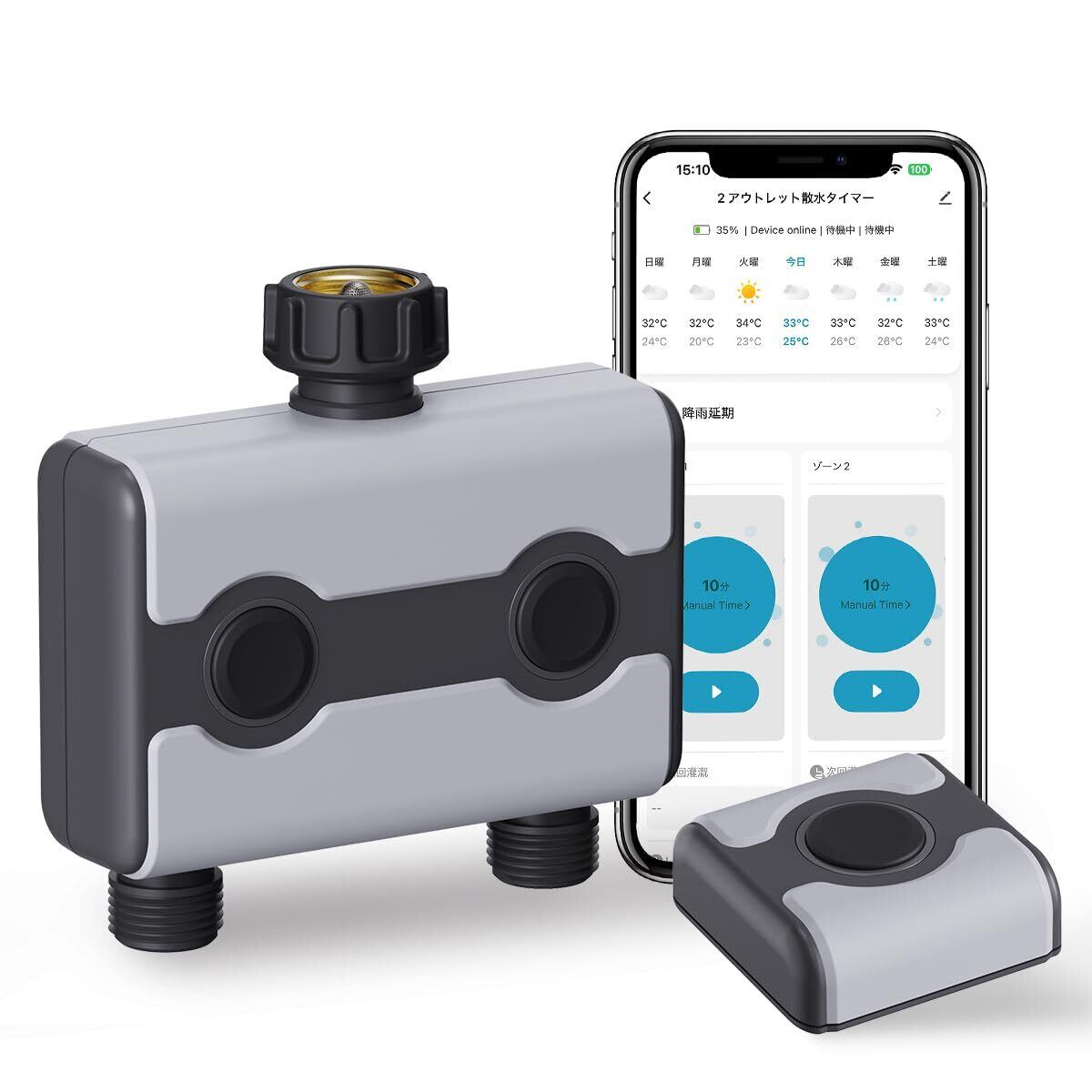 2 アウトレットWiFi対応 スマート散水タイマー 屋外芝生・ガーデン用 自動灌漑システム 2.4GHz WiFi/Bluetooth APP遠隔操作 真鍮製吸水口 簡単蛇口取付