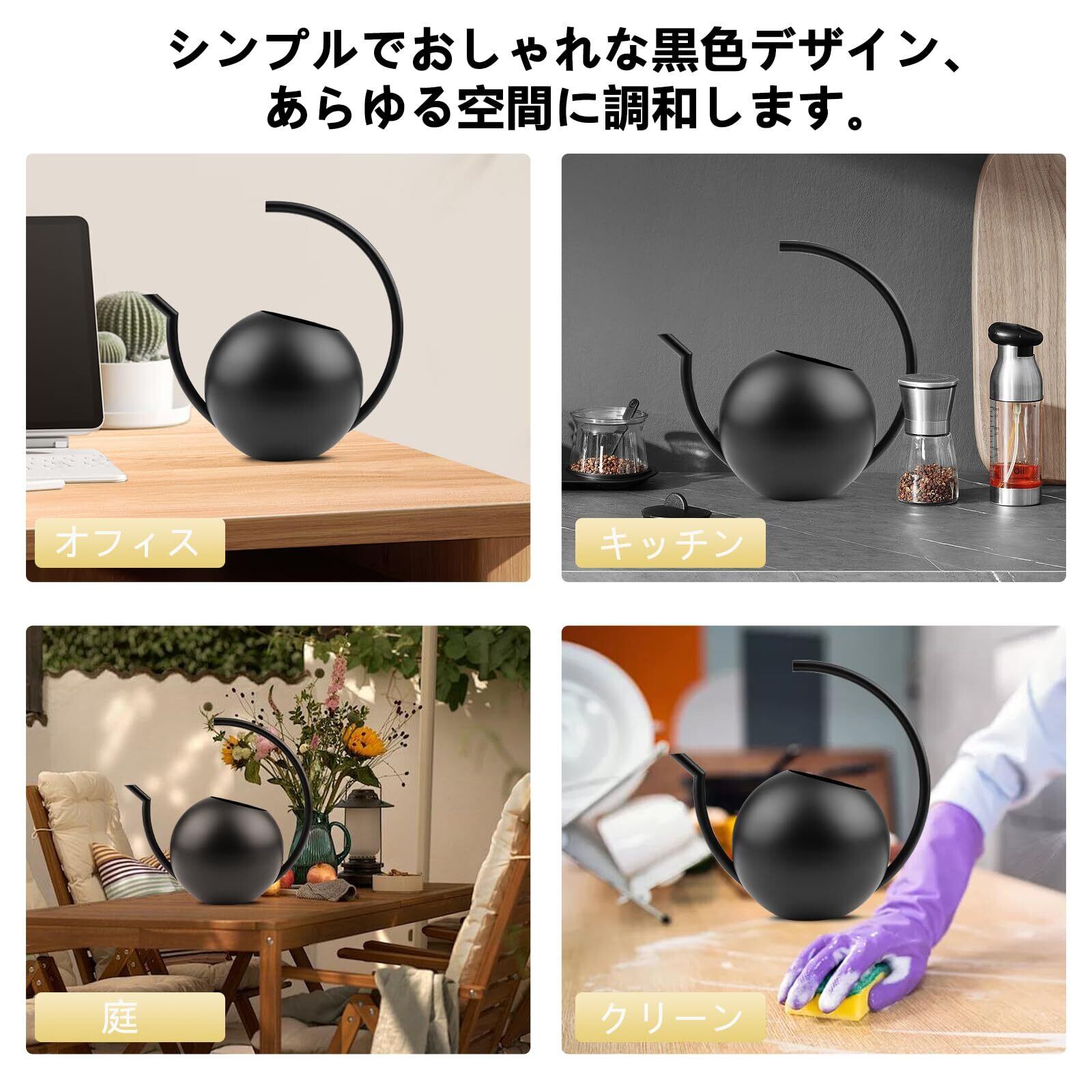 SinRenn じょうろ ステンレス製 1000ml ラウンド ガーデニングじょうろ 北欧風 大容量 ジョウロ ファッション ウォーターポット 水差し ピッチャー 散水用具 長持ち 手軽 水やりじょうろ ボトル ケトル 室内室外じょうろ ガーデニング 水差し 水さし 小さな多肉植物 園芸用 掃除用 観葉植物用 持ち運びやすい 細いノズルと大きな持ち手 ステンレスじょうろ (ブラック)