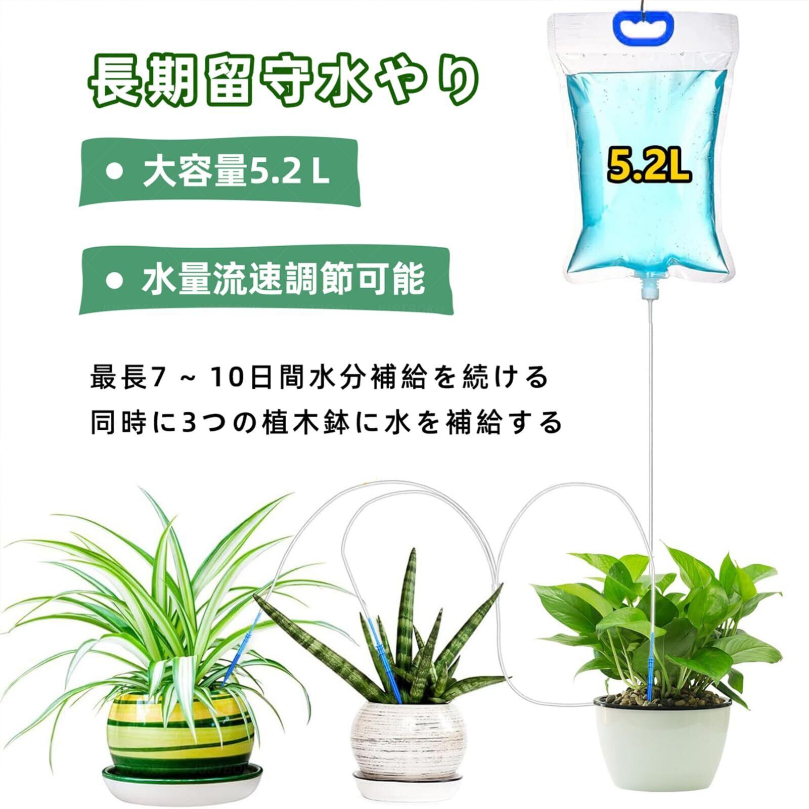 JUSTBOKU 自動水やり 植物 自動水やり機 水遣り当番 自動給水器 植物 鉢植え 水やり 自動 自動水遣り機 水やり 留守 植木 水やり当番 観葉植物 長期留守水やり 園芸自動水やり簡易 点滴灌漑 5.2L 大容量 3つの水出口 水量調節可能
