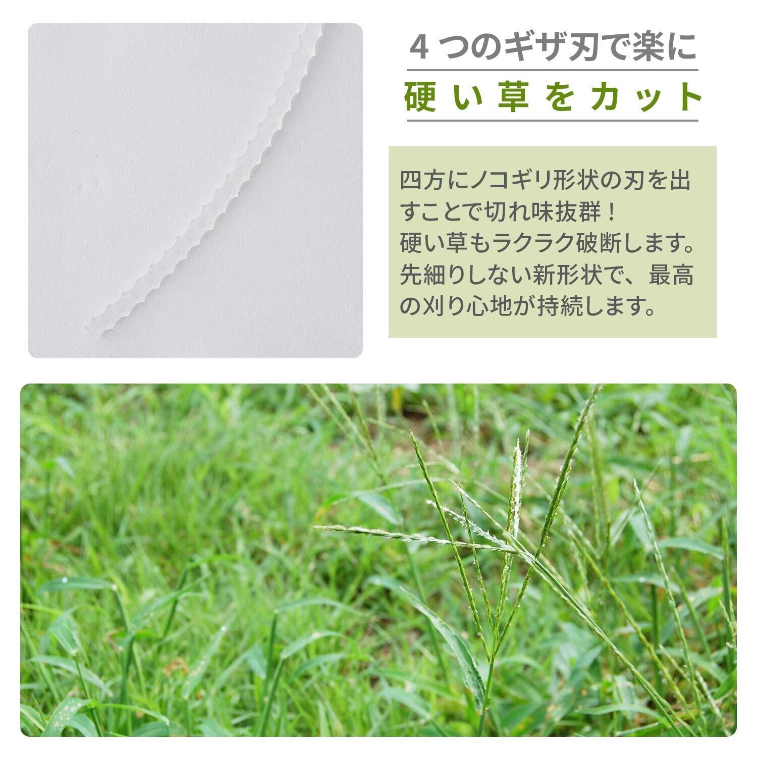 ●極太3.3mm4Gブレード、4面ギザ刃で硬い草でもラクラク破断!。