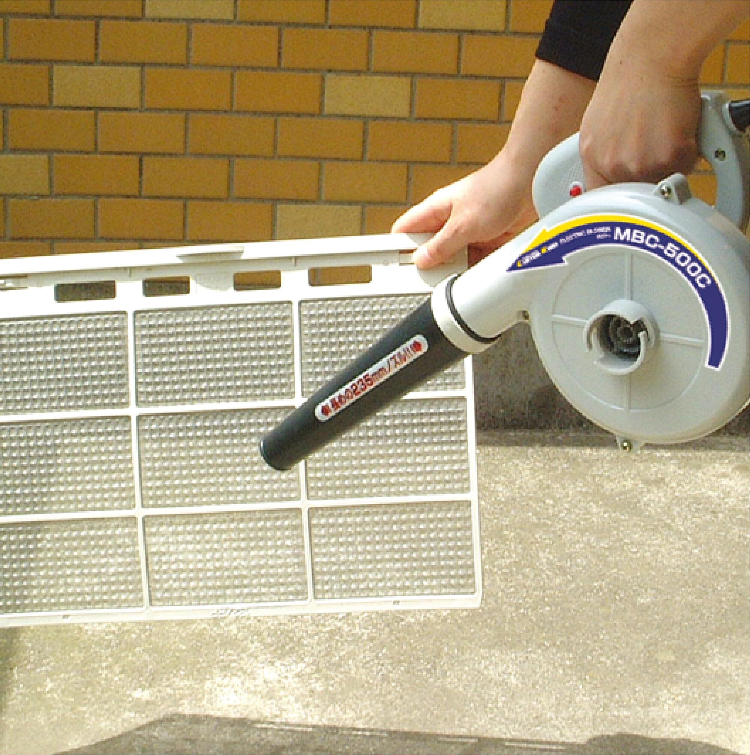 用途1:送風(吹き飛ばし)/アルミサッシやルーバーに積もったゴミの掃出し、細かいホコリや軽い木屑などの吹き飛ばし、クーラーフィルタのホコリの吹き飛ばし、室内から室外にホコリの掃出し、洗車終了後の水滴の吹き飛ばしに