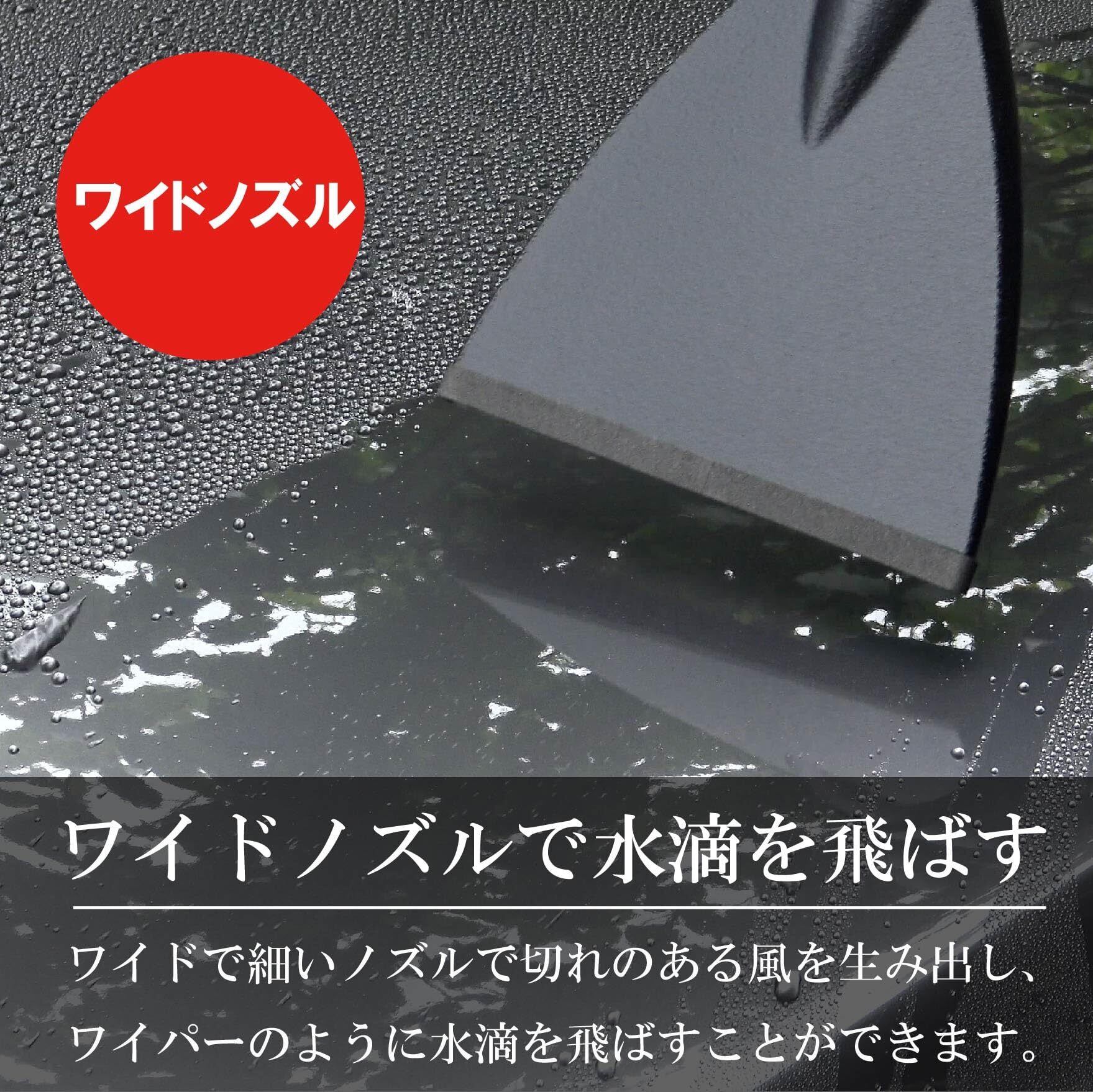 このブロワーノズルは、YouTubeで50万回以上再生された人気商品です。ブロワーの先端に取り付けて使用し、洗車後の水滴を効率的に飛ばします。