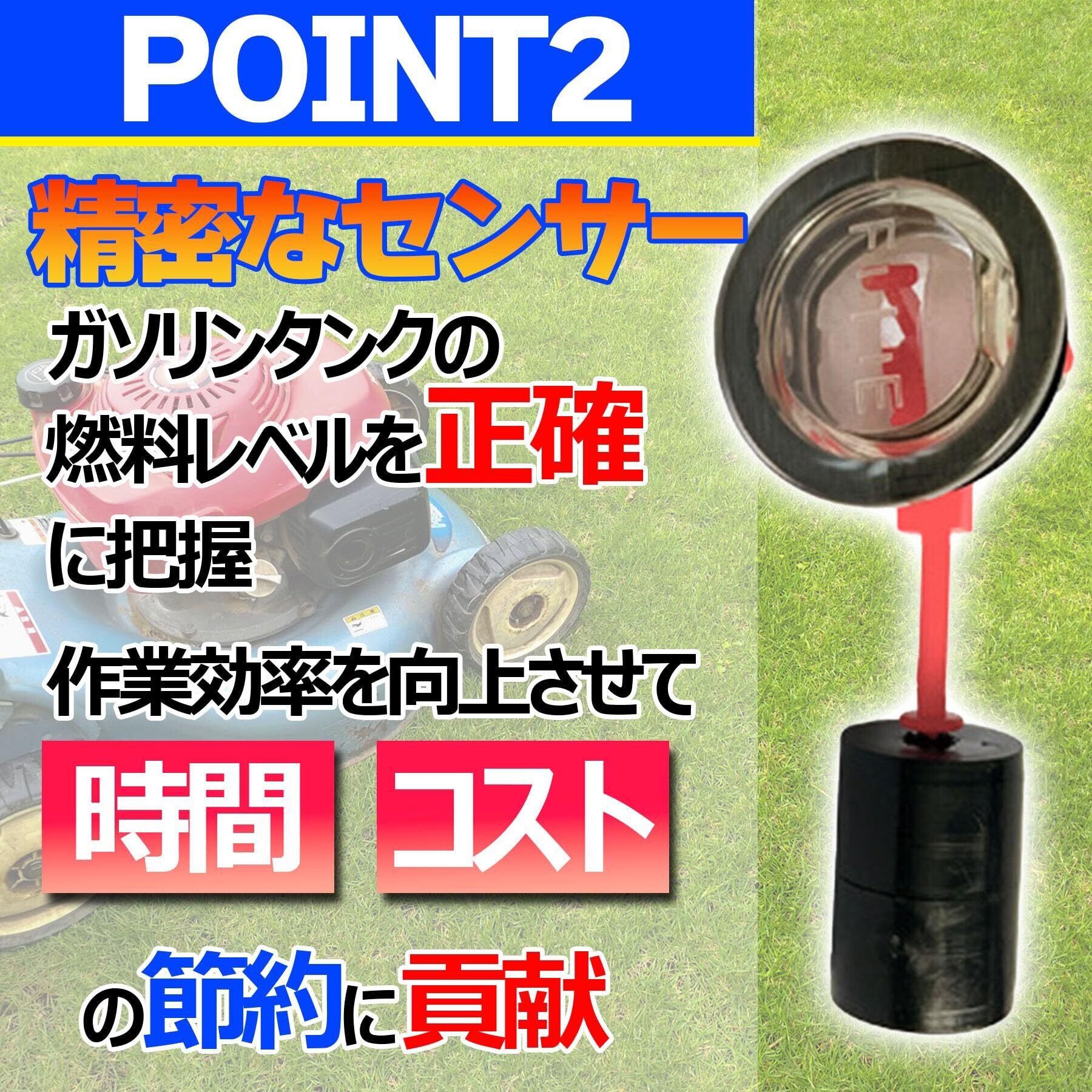 精密な残量センサーにより、ガソリンタンクの燃料レベルを正確に把握。作業効率を向上させ、時間とコストの節約に貢献します。