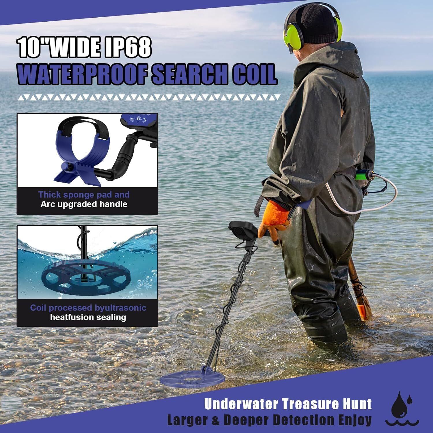 【DSPチップをアップグレード】DSPチップ金属検出器をアップグレードし、検索範囲と感度を高め、検出効率を大幅に向上させた。地下10インチで4分の1硬貨を見つけることができるほど強力です。より深い場所でより大きな物体を見つけることができます。