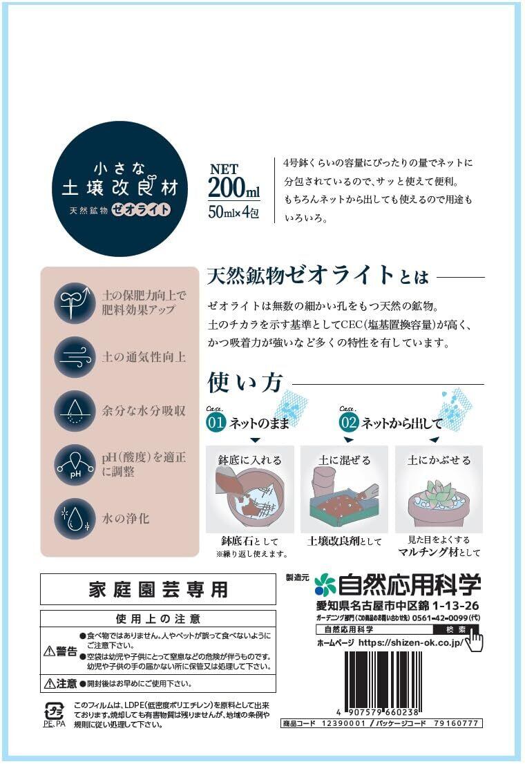 小さな土壌改良剤ゼオライト 200ml