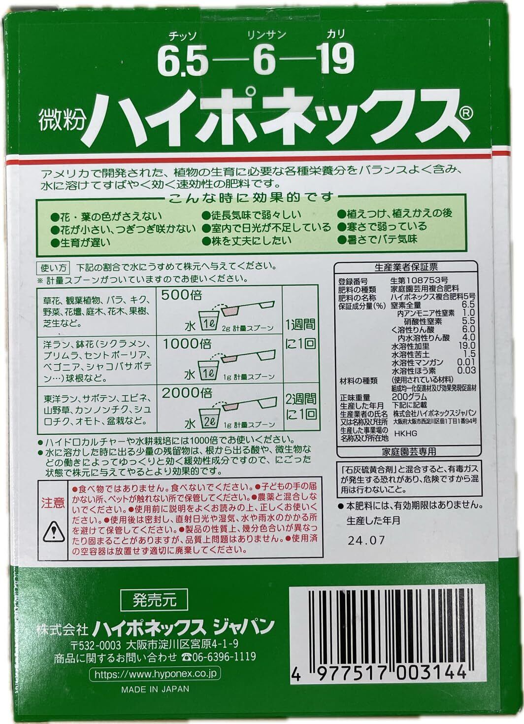 ハイポネックスジャパン 肥料 微粉ハイポネックス 200g