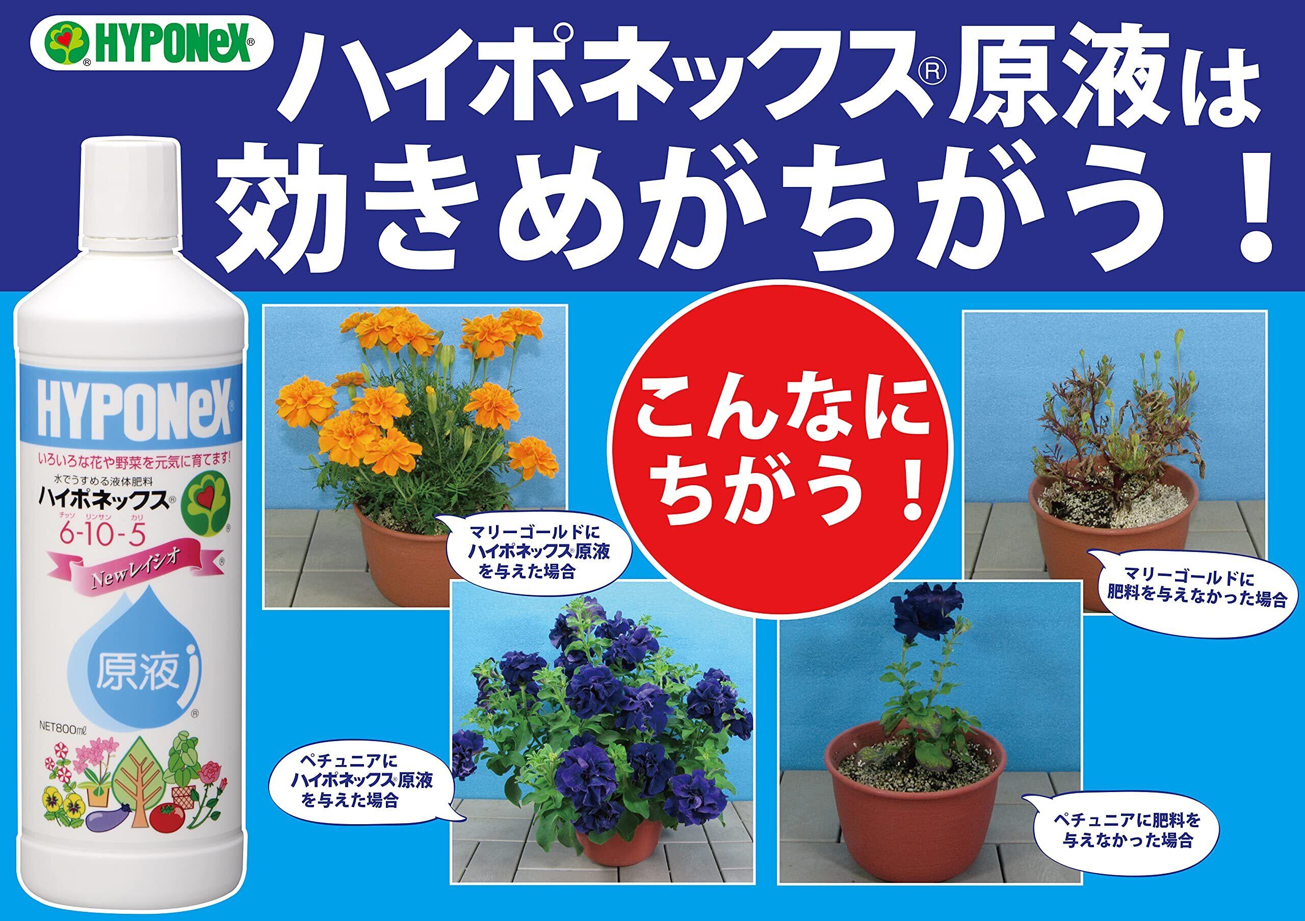 ・チッソ、カルシウム、微量要素を強化し、花や野菜などいろいろな植物の花や実つき、花色・葉色を良くする