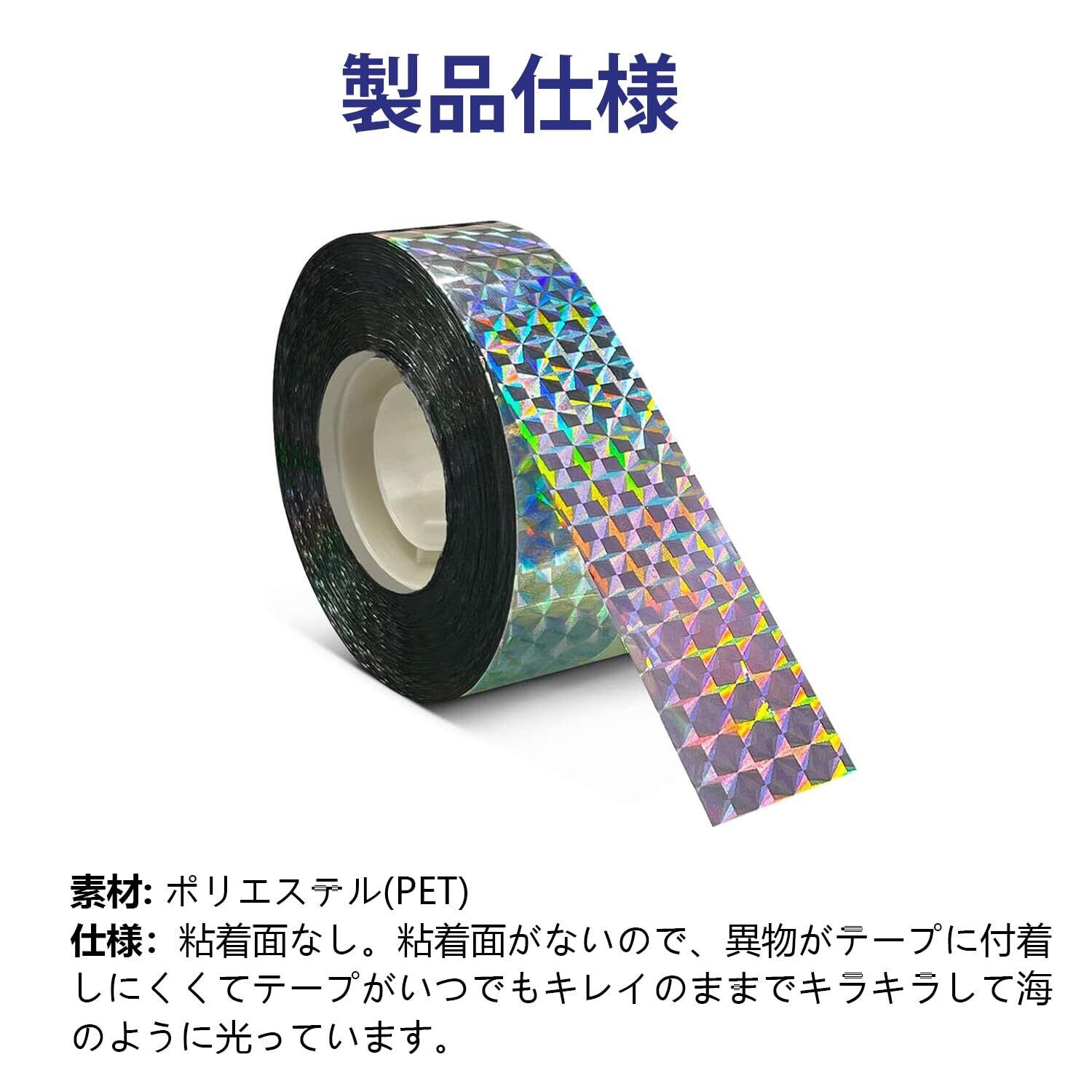 製品情報: 素材:ポリエステル(PET)幅2.4㎝×長さ100m×1巻入 仕様:粘着面なし。粘着面がないので、異物がテープに付着しにくくてテープがいつでもキレイのままでキラキラして海のように光っています。
