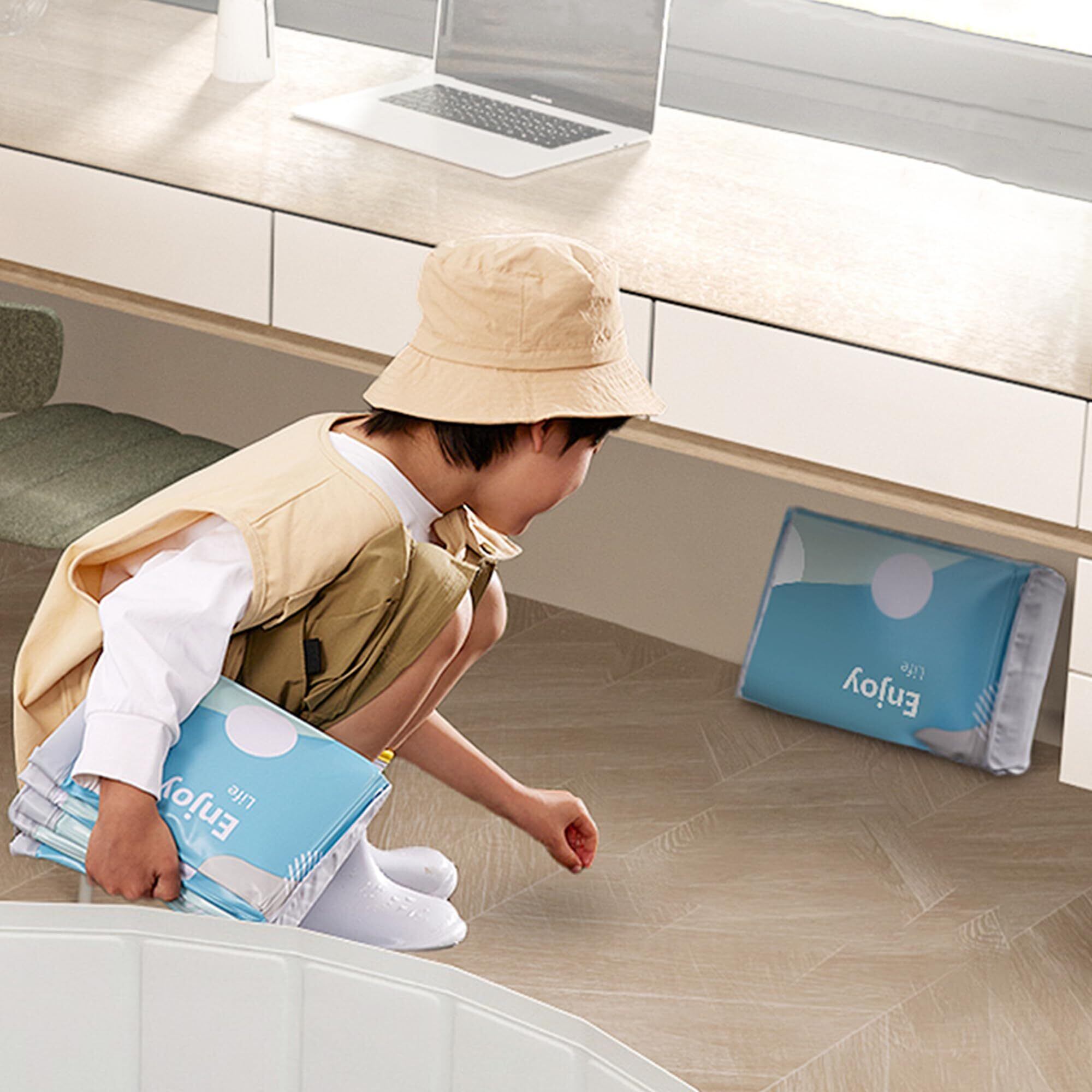 2.このプールは空気入れの必要がない、広げるだけで楽に遊べます。使わない時に折りたたんで、コンパクトに収納できます。