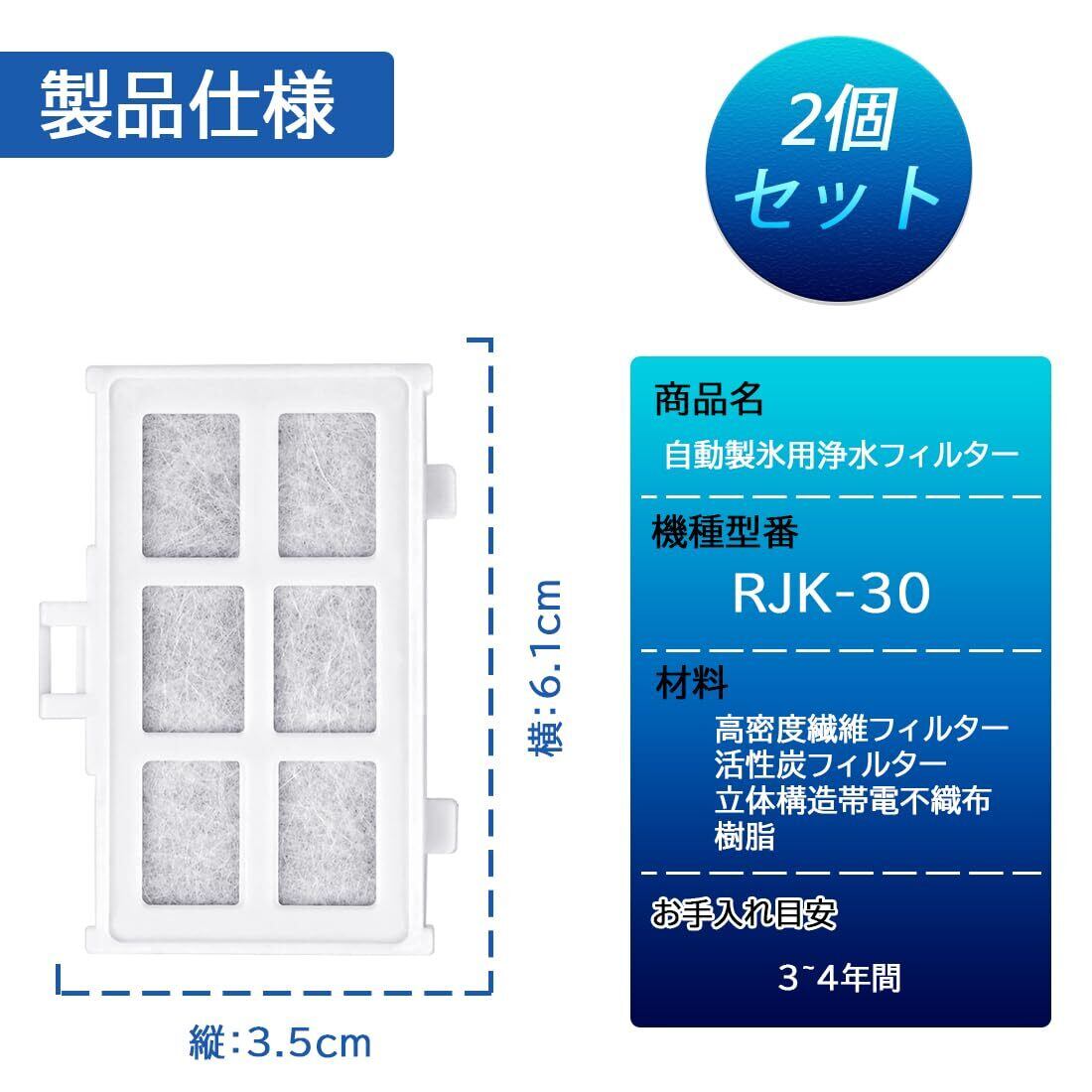 【製品仕様】 ❶型番:RJK-30( RJK-30-100 ) ❷パッケージ内容:製氷機フィルター2個 ❸寸法:高さ7mm*幅35mm*横60mm ❹ご注意:本製品は日立用 冷蔵庫 製氷機 フィルターの純正品ではなく、互換品です。