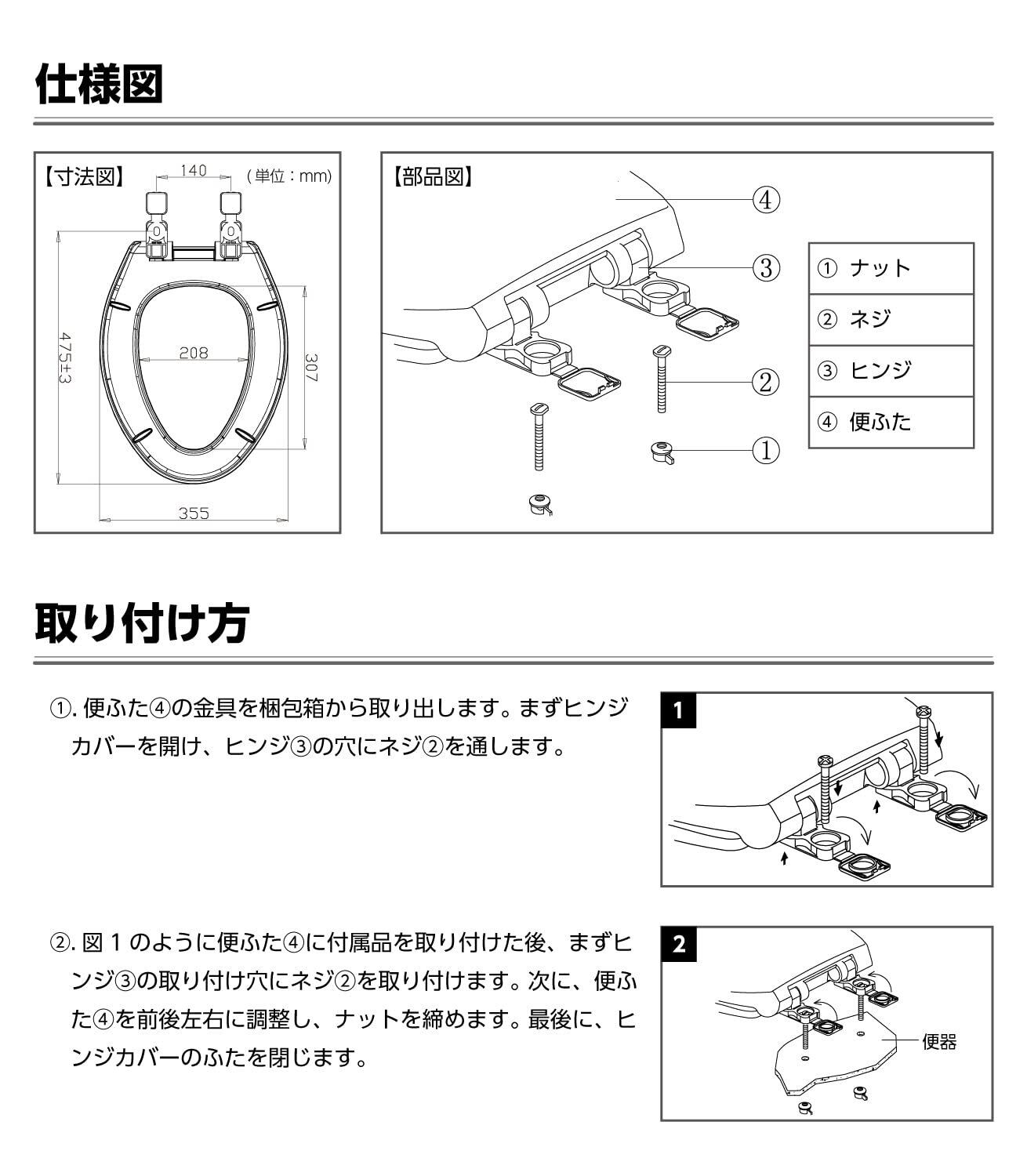 【使用上の注意】 ●対応便器:便座取付穴深さが40mm以下