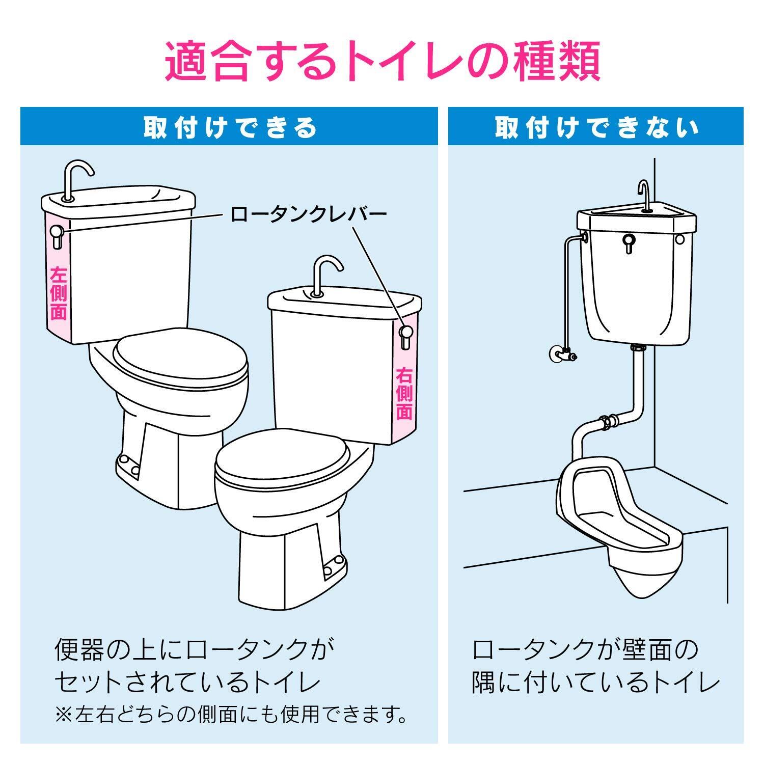 ・左右サイドにレバーが付いたロータンクとレバーがセットされた(密結型)トイレに取付けできる