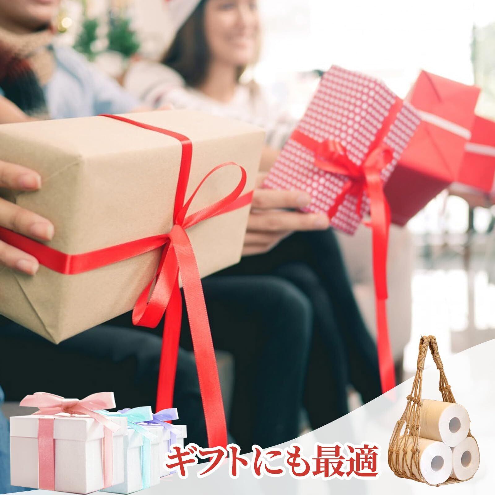 【おしゃれなトイレットペーパー収納ラック】壁面を有効活用できるトイレットペーパー収納ネット。耐久性の高いコットンロープを使用し、トイレットペーパーやタオルなどをおしゃれに収納可能です。