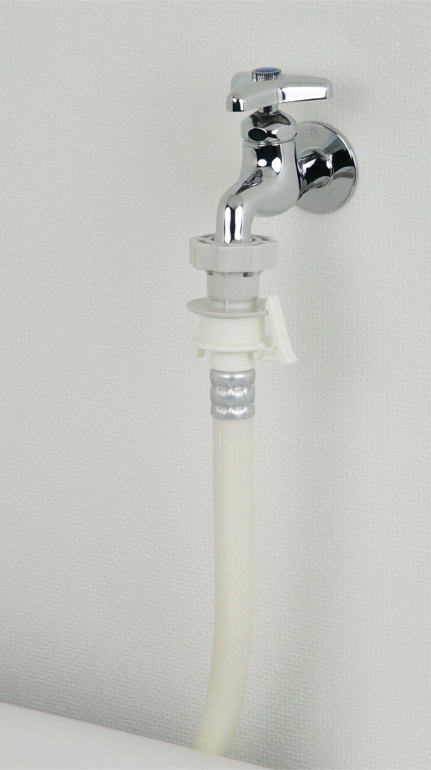 万が一ホースがはずれた場合でも、瞬時に給水を停止できる自動閉止機構付。