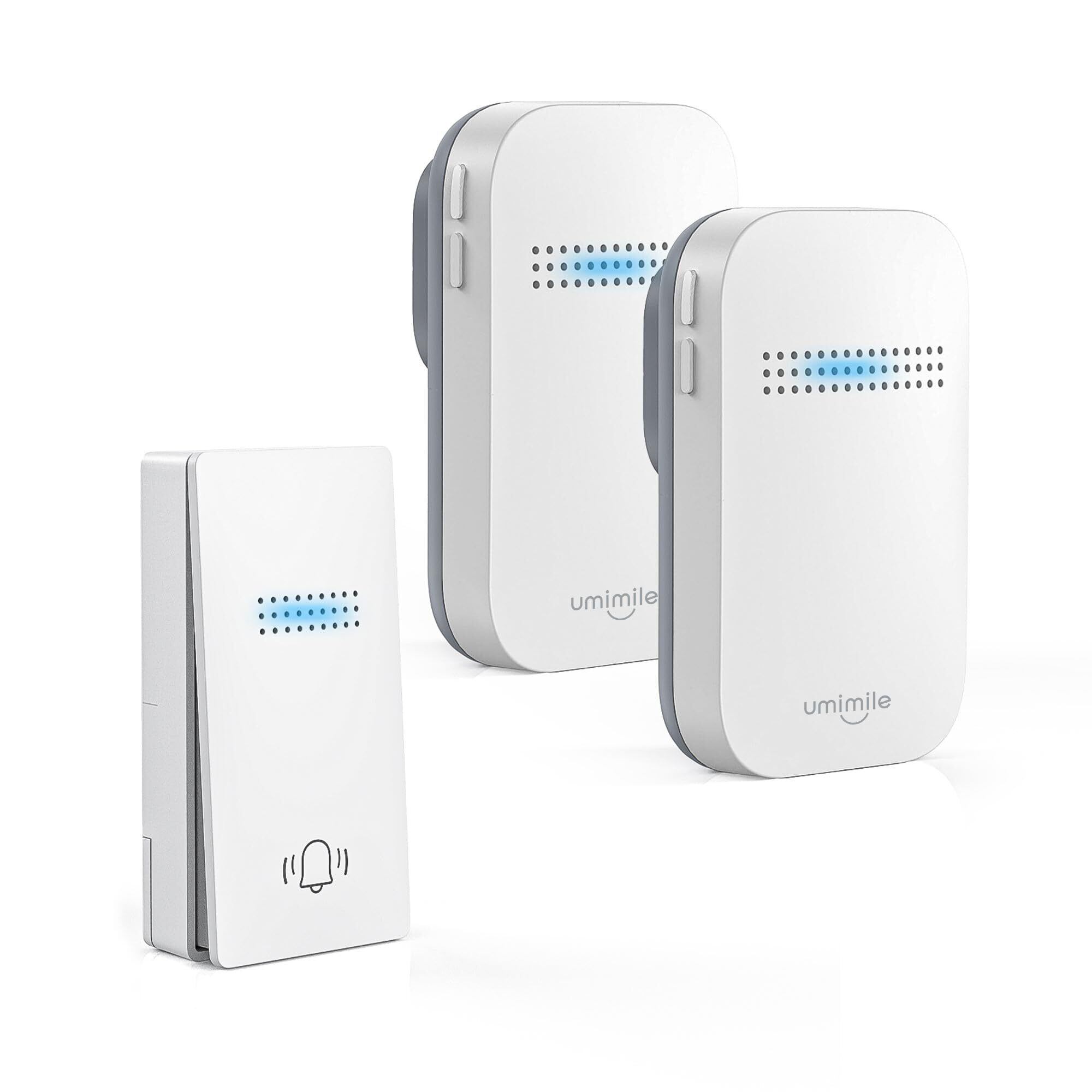 Umimile ワイヤレスチャイム 自動発電 玄関チャイム 電池不要 防水防塵 工事不要 38曲 4段階音量調節 100db 光でお知らせ メモリー機能 ドアベル 介護/飲食店/玄関 150M範囲 二階も聞こえる 来客対応(1T2ホワイト)