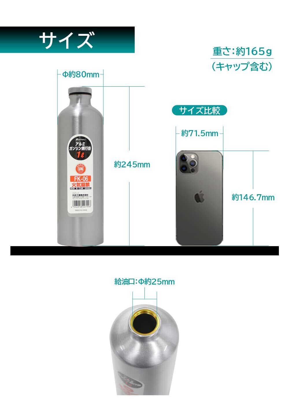 メルテック(meltec) ガソリン携行缶 アルミボトルタイプ 1L Meltec消防法適合品 アルミニウム 厚み0.8mm 収納ケース付 FK-06