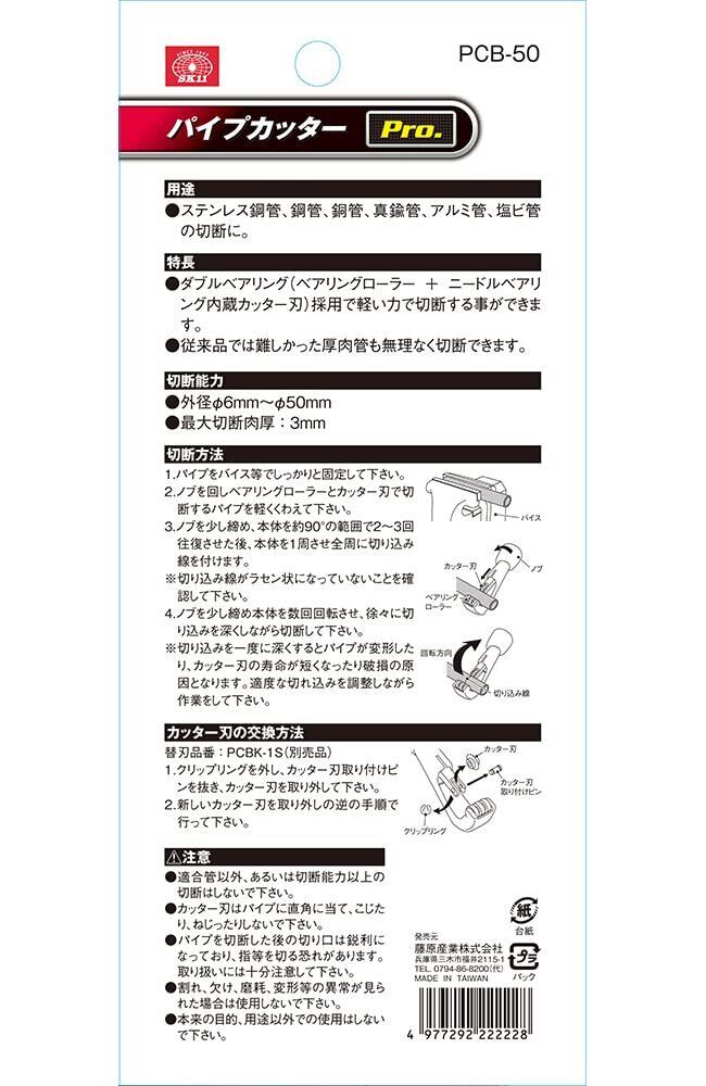 SK11(エスケー11) パイプカッターPro. 切断パイプ径 6~50mm ステンレス管 銅管 3mm厚まで PCB-50