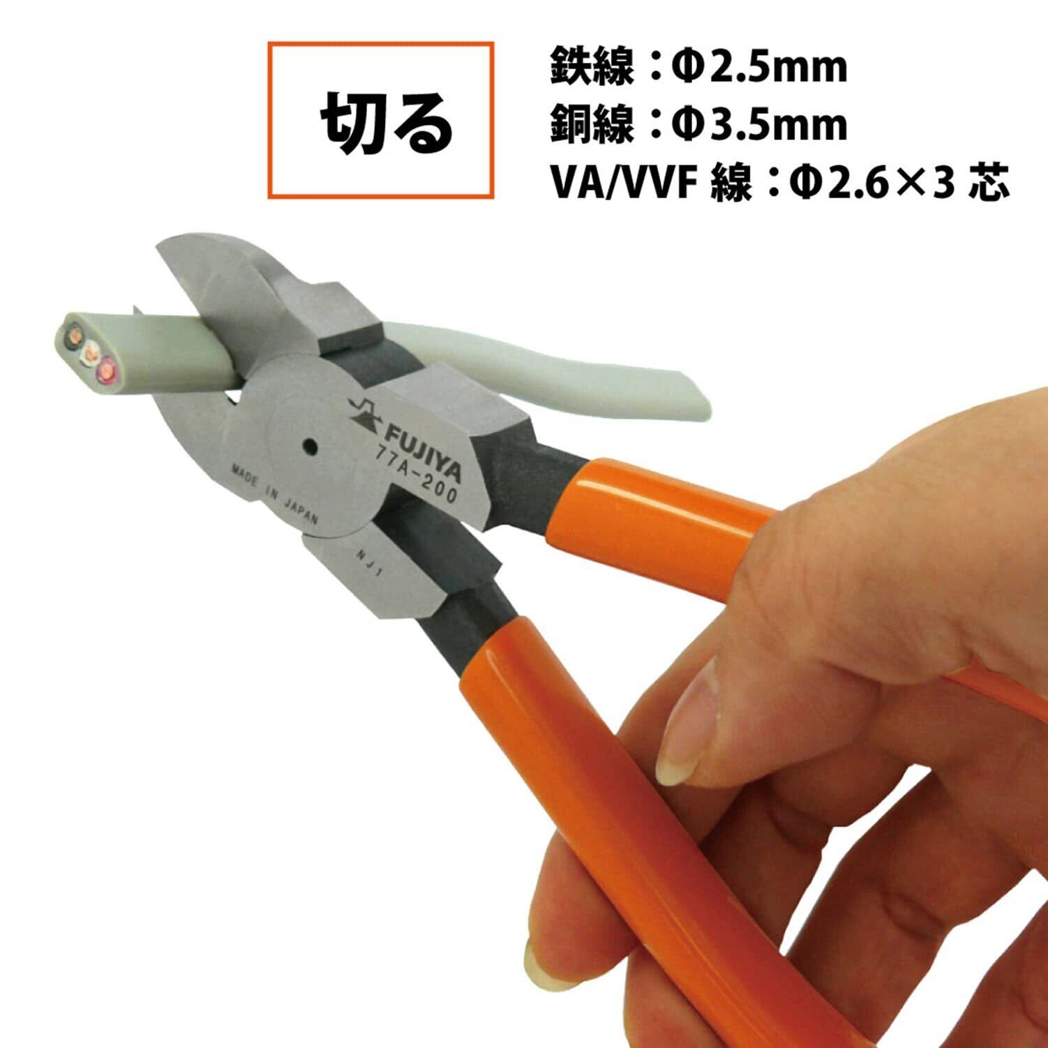 フジ矢(Fujiya) 電工VAニッパ(ストレート刃) 200mm VA線切断に最適な刃部鏡面仕上げ 77A-200