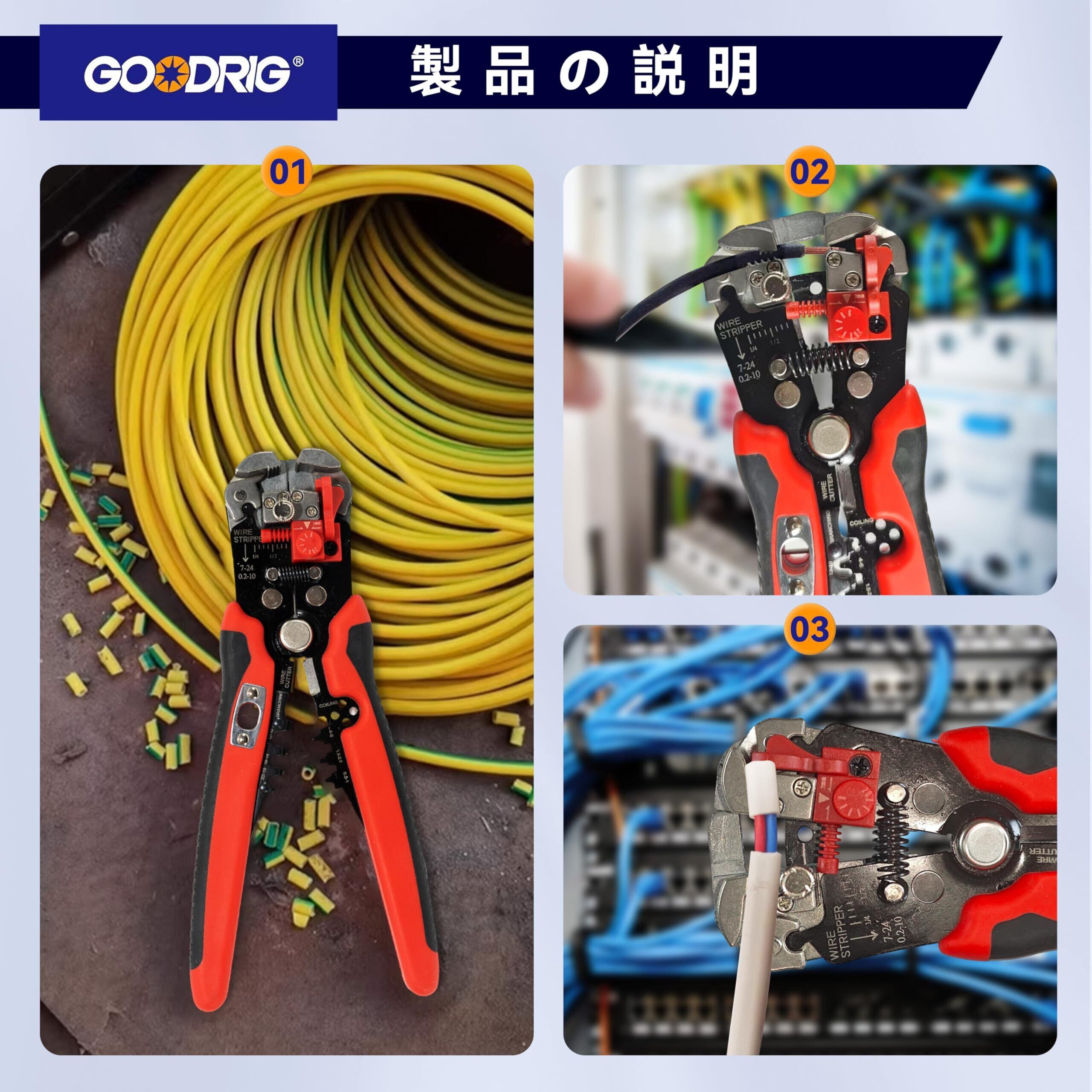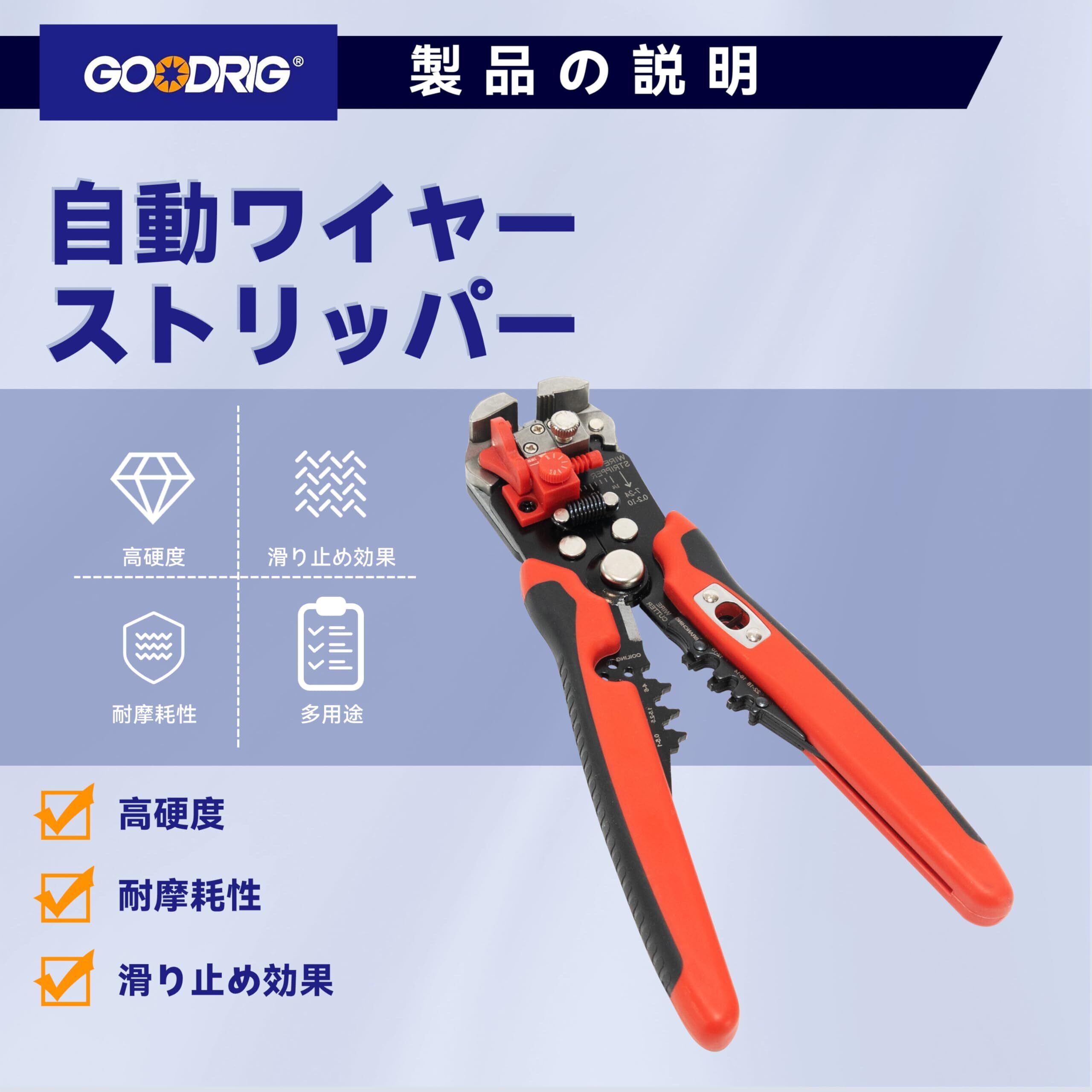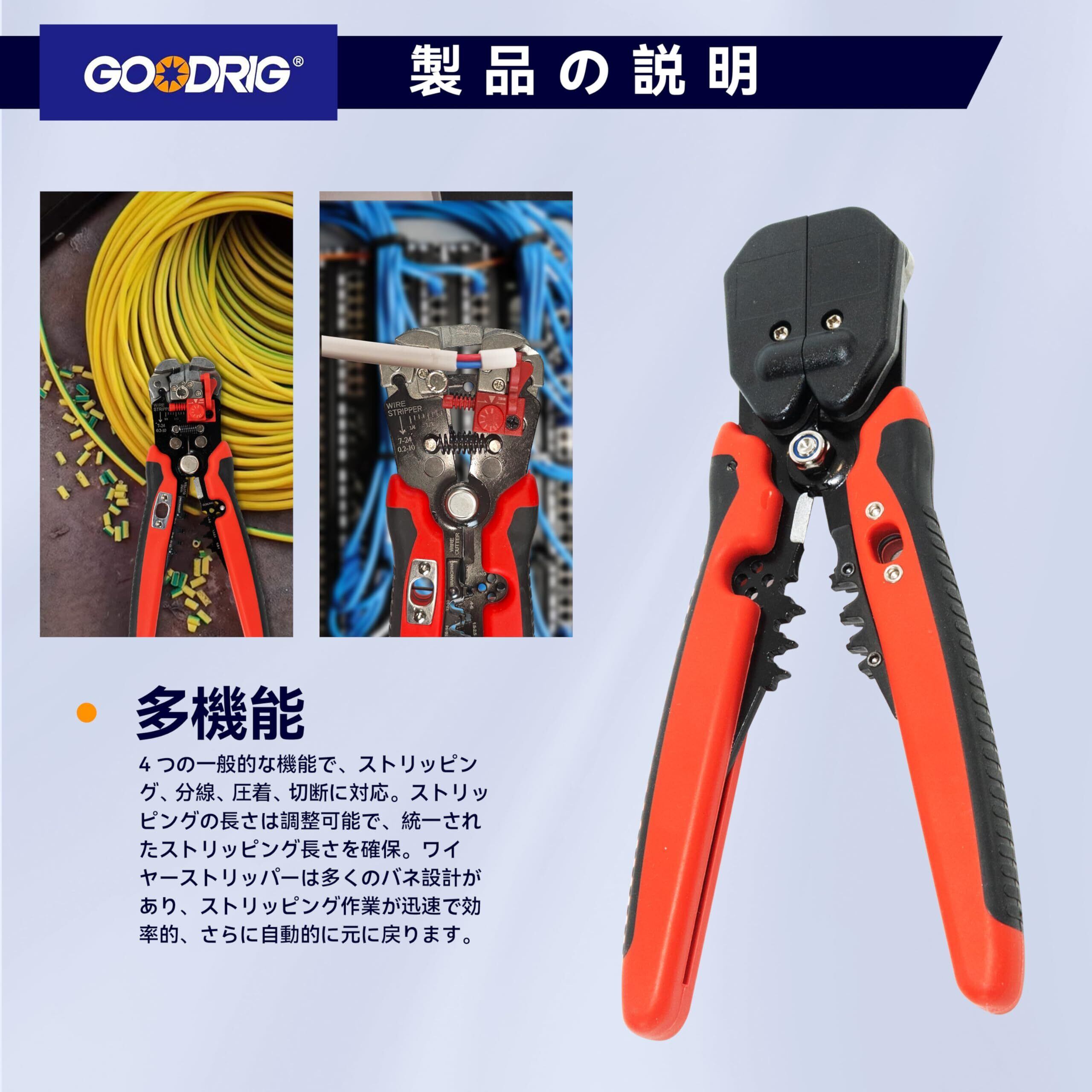 GOODRIG 自動ワイヤーストリッパー 多機能電気ワイヤーストリッパー ストリッピング 分線 圧着 切断一体型ツール