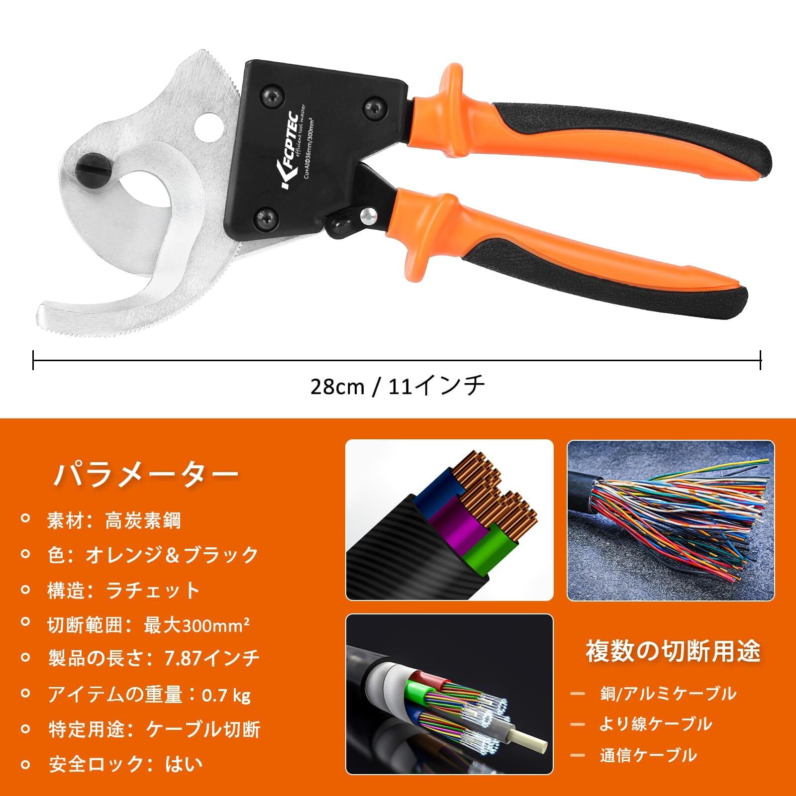 KF CPTECプロ用ラチェット式ケーブルカッター【最大300mm²対応】- 多機能高耐久アルミニウム及びマルチコアケーブル適用、作業効率向上